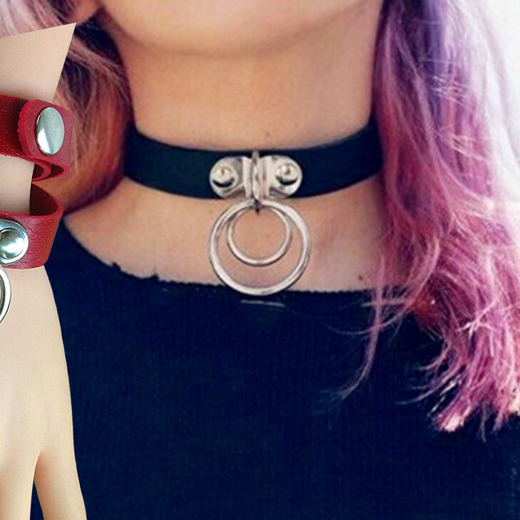 ダンス用 レザーチョーカー ペンダントネックレス アクサセリー 2way 首輪&ブレスレット レザー スナップ パンク ライブ ハロウィン クリスマス コスプレ イベント 文化祭 忘年会 パーティー