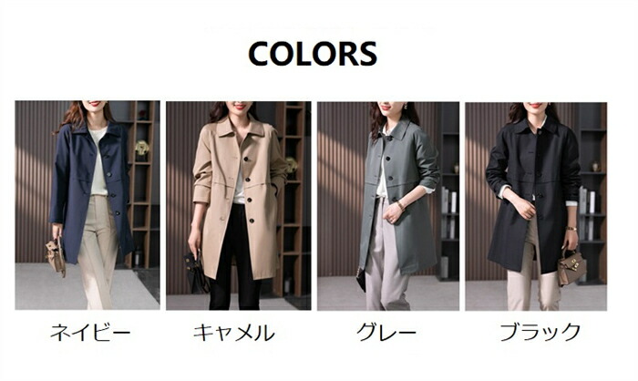 トレンチコート レディース ミドル丈 コート ジャケット 豊富な品揃え M L XL 2XL 3XL キャメル ブラック ネイビー グレー