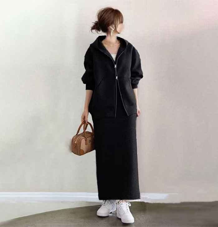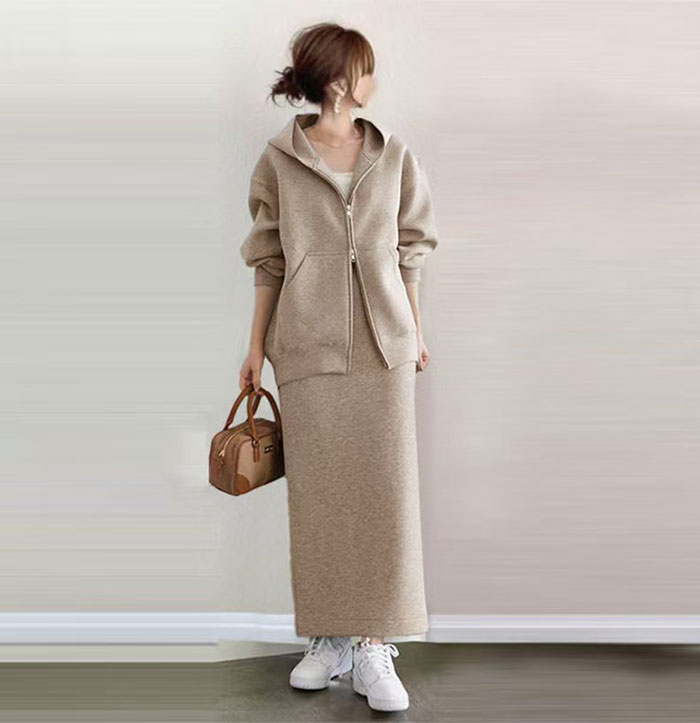 スカートセットアップ パーカーセットア スーツ セットアップ スカートスーツ 豊富 S M L ブラック グレー ベージュ