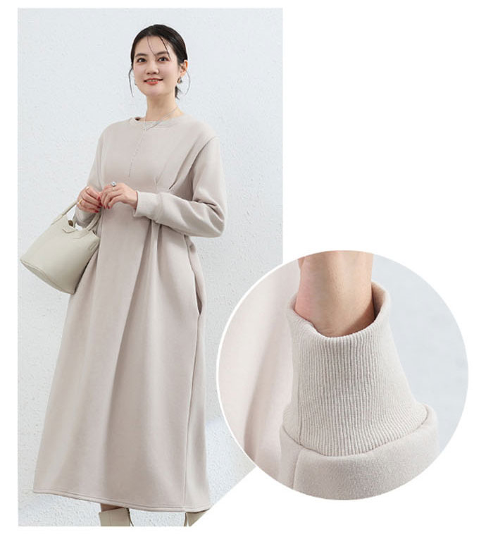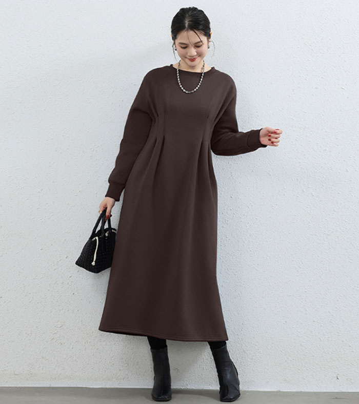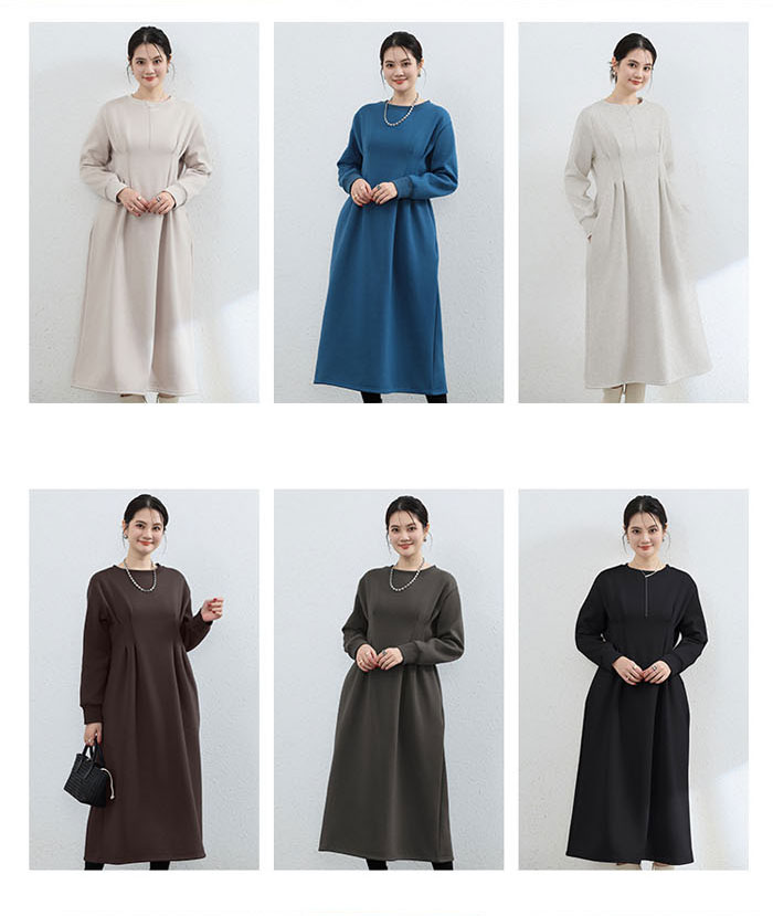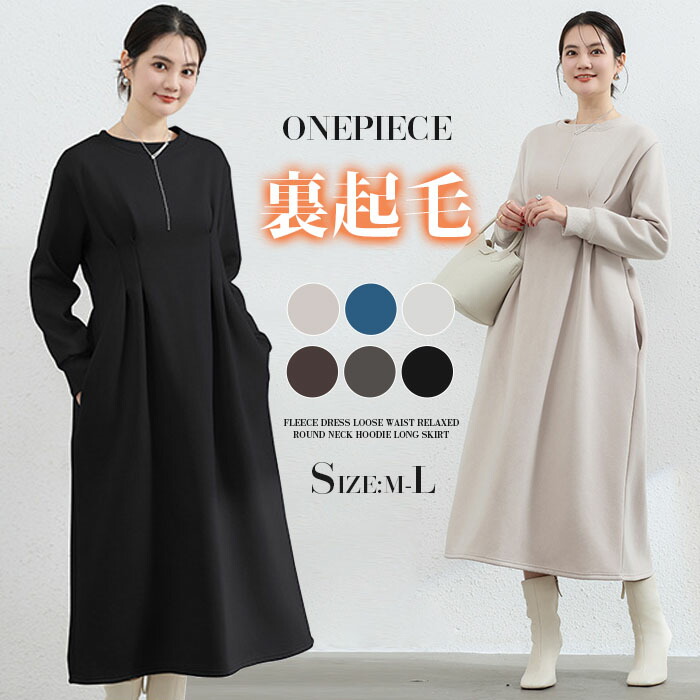 ロングワンピース 裏起毛ワンピース ロ レディースファッション 新登場! M L ブルー 黒 ブラウン ダークグレー ベージュ ライトグレー