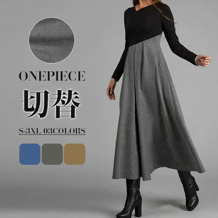 ロングワンピース ニット ニットワンピ ワンピース 超目玉商品 S M L XL 2XL 3XL 4XL カーキ グレー ブルー