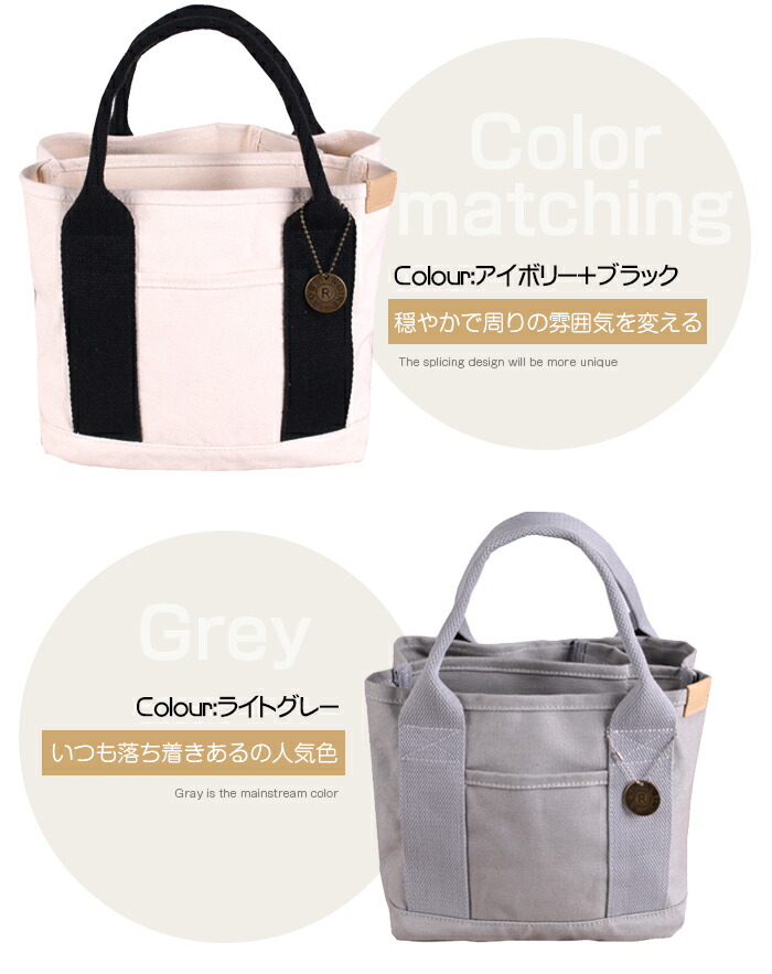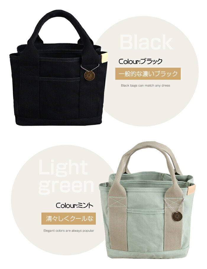 ミニ トートバッグ レディース キャン バッグ レディースバッグ トートバッグ 新登場! ネイビー ブラック アイボリー ライトグレー ミント カーキ ピンク コーヒー ダークグレー アイボリー+ブラック ロースピンク