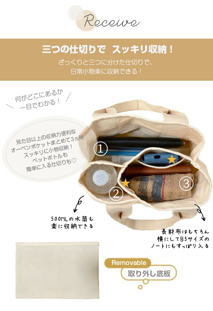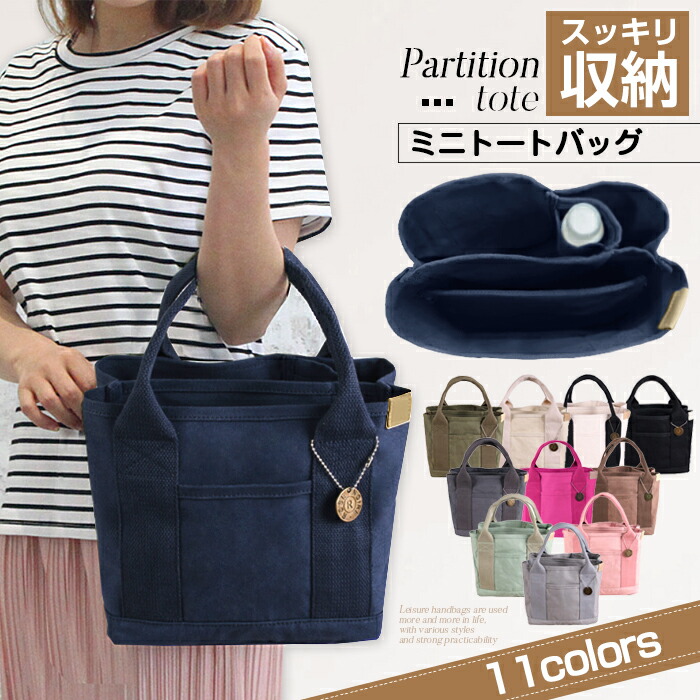 ミニ トートバッグ レディース キャンバス 3つ仕切り ミニトート ランチバッグ ママバッグ マザーズバッグ B5 多収納 秋バッグ シンプル おしゃれ コットン ナチュラル 多収 便利