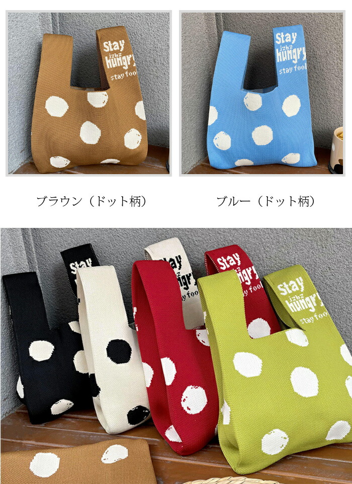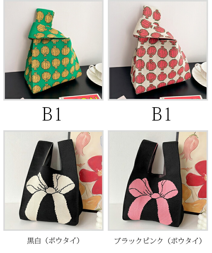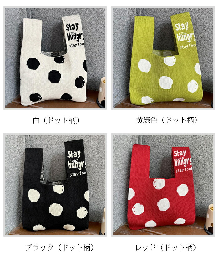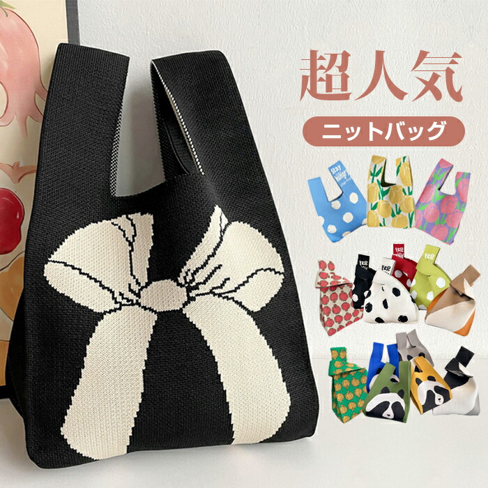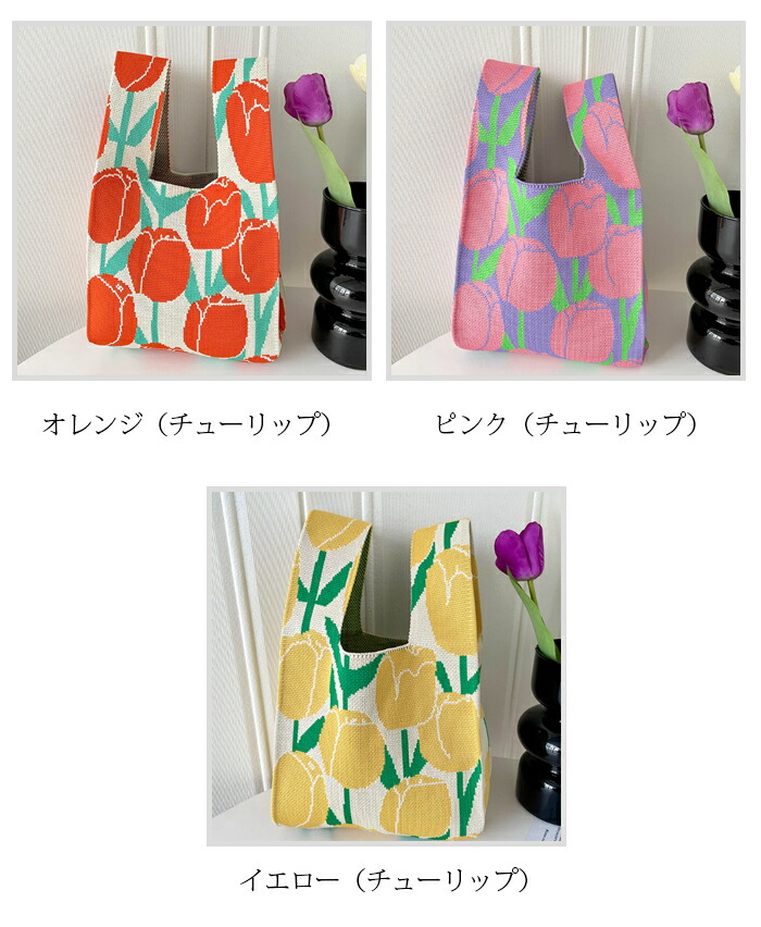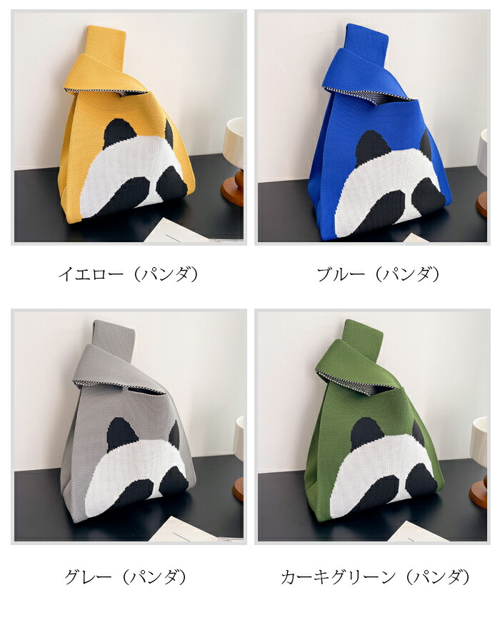 ミニトートバッグ ニット レディース バッグ エコバッグ 通販 ピンク(無地) ブラック(無地) スカイブルー(無地) ローズピンク(無地) オフホワイト(無地) グリーン(無地) パープル(無地) 黄緑色(無地) レッド(無地) ブラウン(無地) カーキ(無地) 杏色(無地) オレンジ(チューリップ) ピンク(チューリップ) イエロー(チューリップ) 黒白(ボウタイ) ブラックピンク(ボウタイ) 白(ドット柄) 黄緑色(ドット柄) ブラック(ドット柄) レッド(ドット柄) ブラウン(ドット柄) ブルー(ドット柄) イエロー(パンダ) ブルー(パンダ) グレー(パンダ) カーキグリーン(パンダ) A B C D