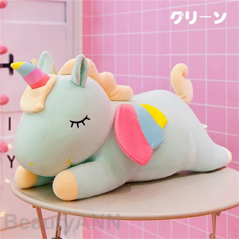 52cm 虹 ユニコーン ぬいぐるみ インテリア 寝具 収納 通販 ホワイト グリーン イエロー ピンク
