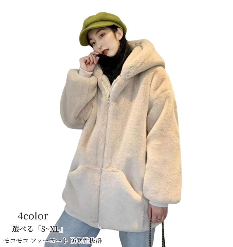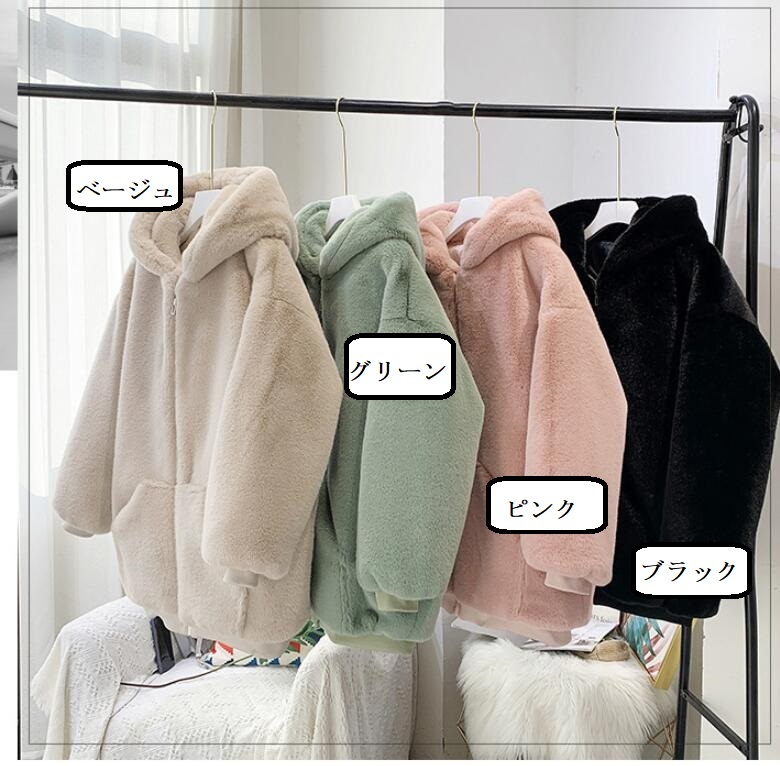 フェイクファーコート フード付き ファ コート ジャケット 早い者勝ち ブラック ベージュ グリーン ピンク S M L XL