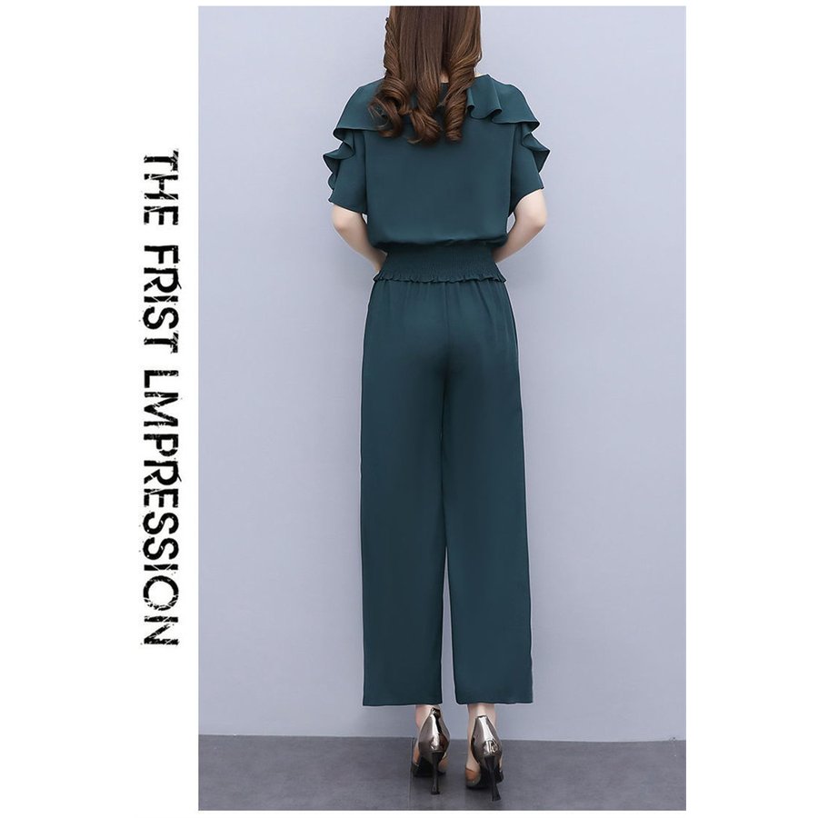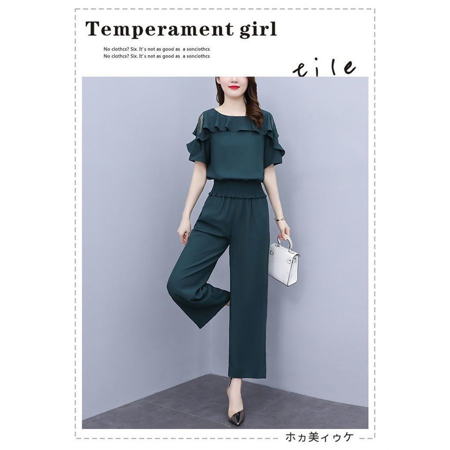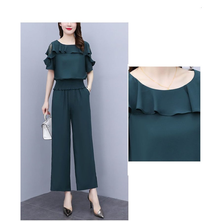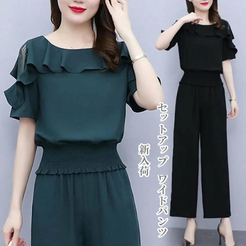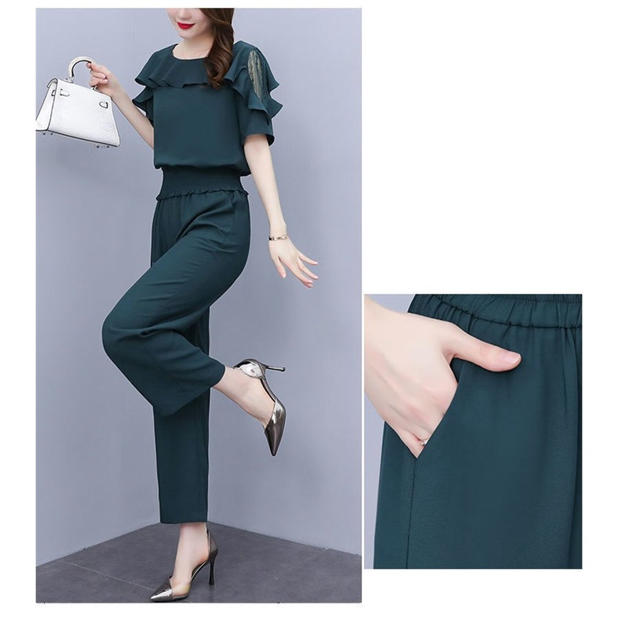 セットアップ レディース 40代 春夏 スーツ セットアップ パンツスーツ 特集 グリーン ブラック L XL 2XL 3XL 4XL