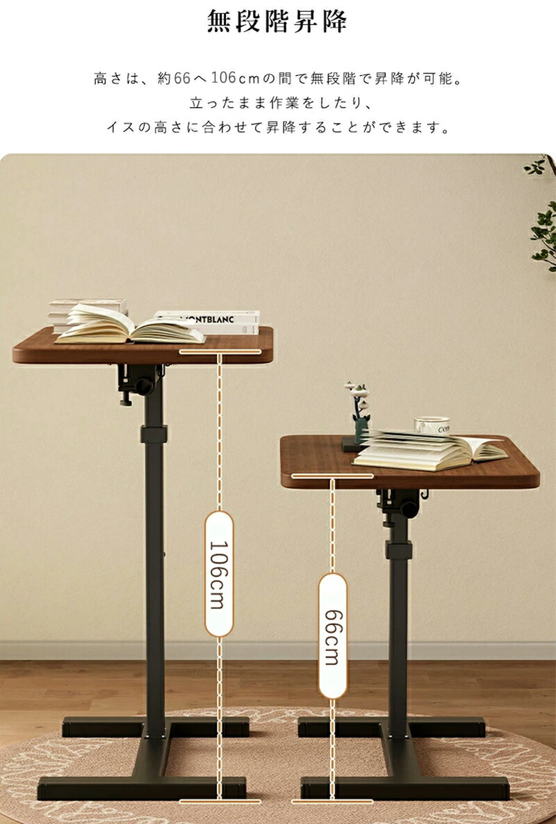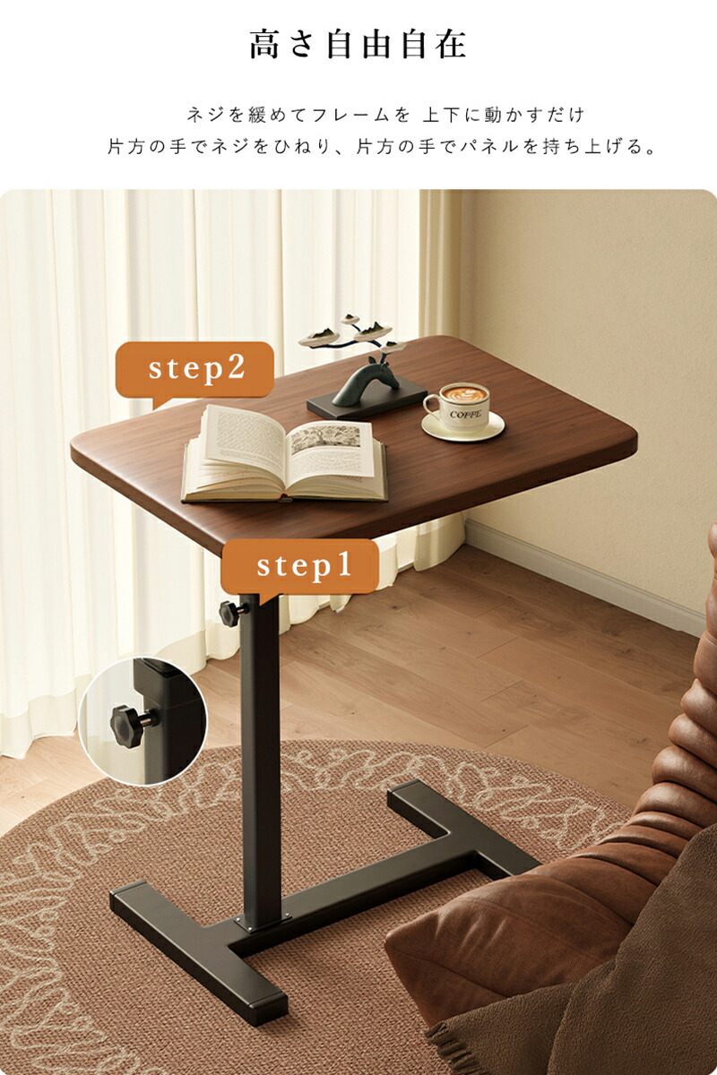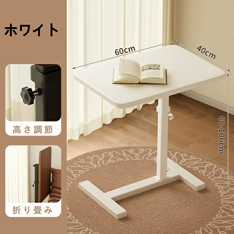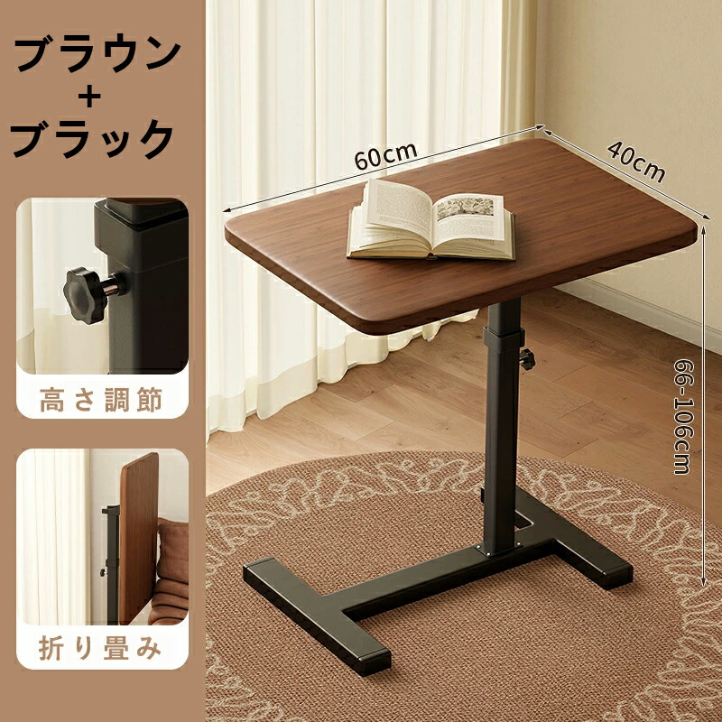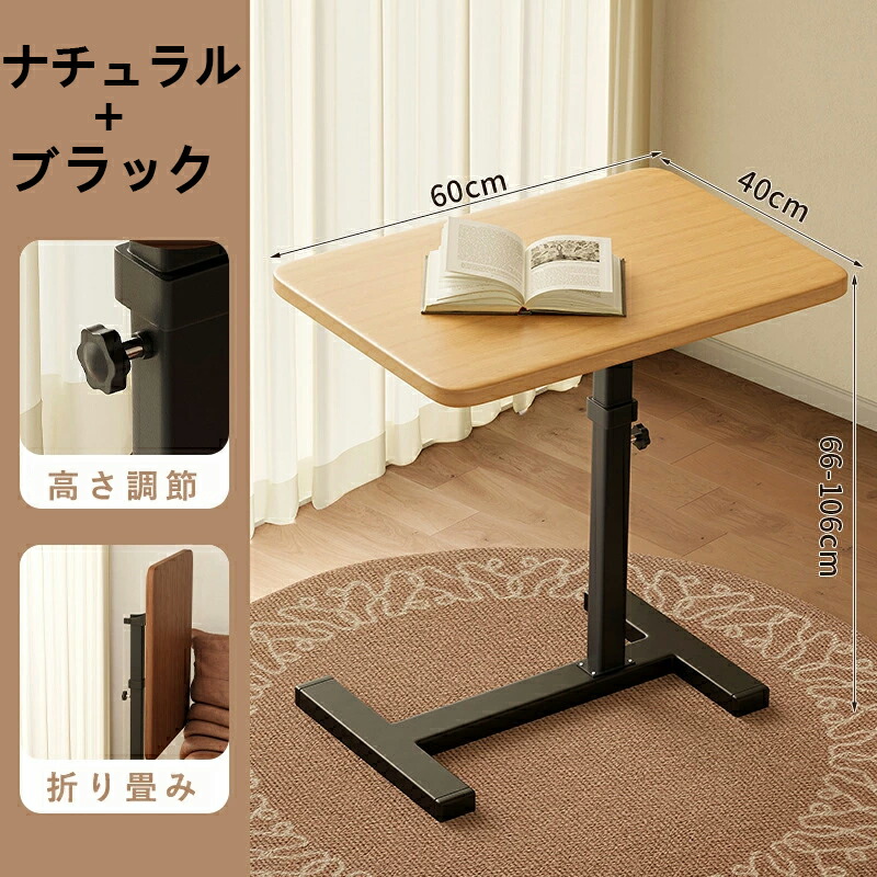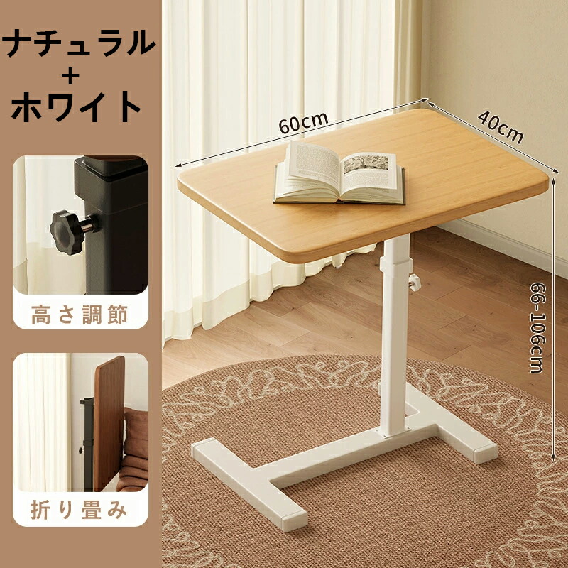 サイドテーブル 昇降式 ベッドテーブル ブラウン+ブラック ナチュラル+ブラック ホワイト ナチュラル+ホワイト
