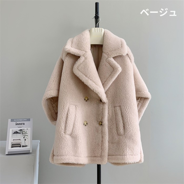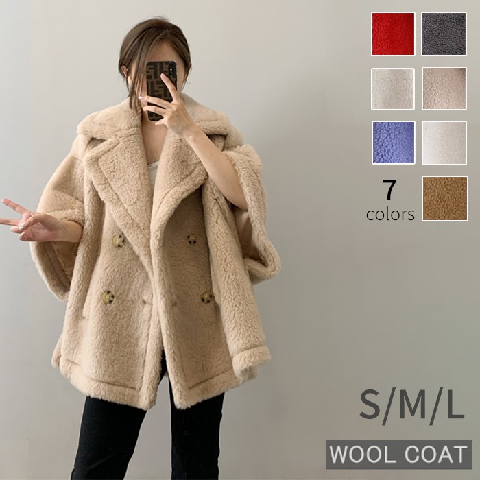 テディベアポンチョコート ポンチョ コ レディースファッション 豊富 ブラウン キャメル ベージュ オフホワイト グレー パープル レッド S M L
