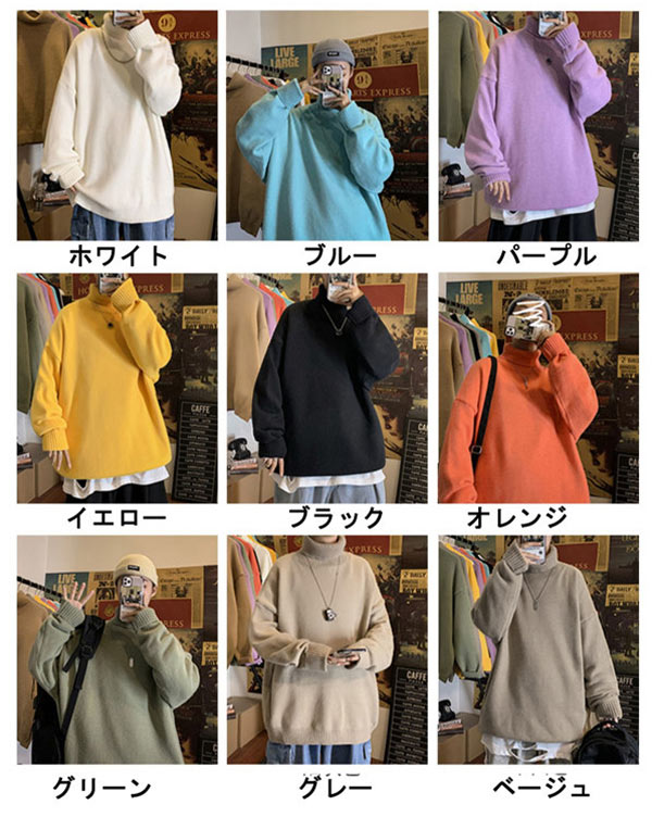 ニット セーター メンズ ペアルック メンズファッション 豊富 M L XL 2XL 3XL グレー オレンジ イエロー パープル ブラック ホワイト ベージュ グリーン ブルー