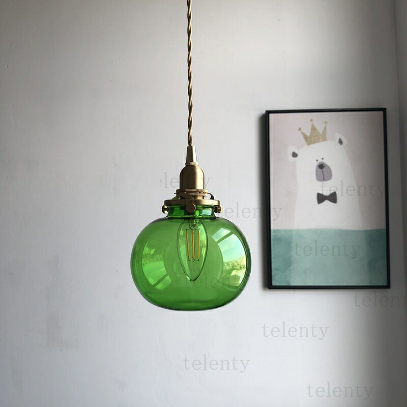 AAAZM ペンダントライト 北欧 おしゃれ ガラス LED対応 ボール 丸型 真鍮 レトロ 天井照明器具 ダイニング キッチン 玄関 リビング 食卓用 ステンドグラス 円形 シンプル 吊下げライト