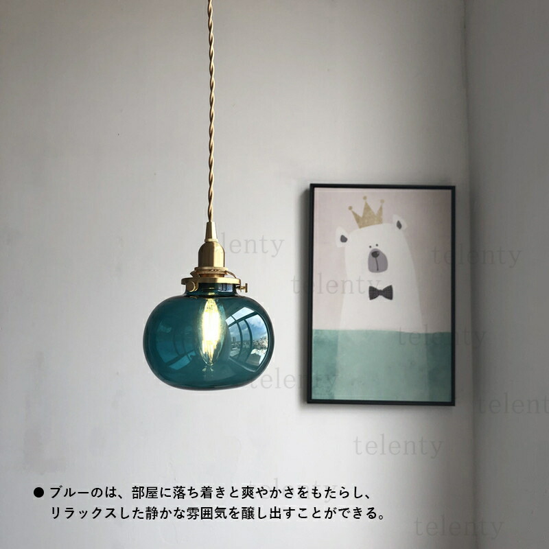 AAAZM ペンダントライト 北欧 お ブルー(1灯) トランスペアレント(1灯) グリーン(1灯) (口金E14)C35電球LED温白色6W (YMD口金E14)リモコン電球9W