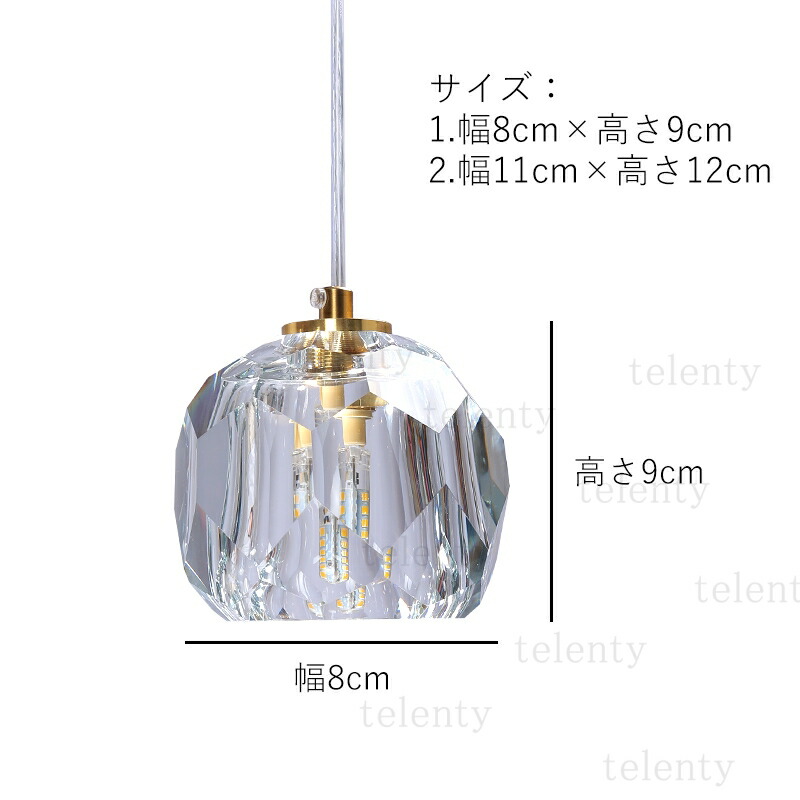 ペンダントライト 水晶ガラス 北欧 お 幅8cm×高さ9cm 幅11cm×高さ12cm 口金ゴールド(1灯) 口金シルバー(1灯)