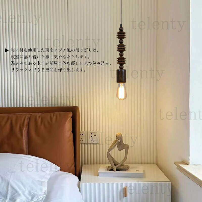 この木製吊り灯りは、北欧デザインのシンプルさと日本の侘び寂び美学を組み合わせたユニークな作品です。天然木材を使用することで、温かみのある質感と自然の風合いを引き出し、空間に落ち着きを与えます。日式原木の持つ素朴で洗練された美しさは、現代のインテリアスタイルにもしっくりと溶け込み、特別な雰囲気を演出します。