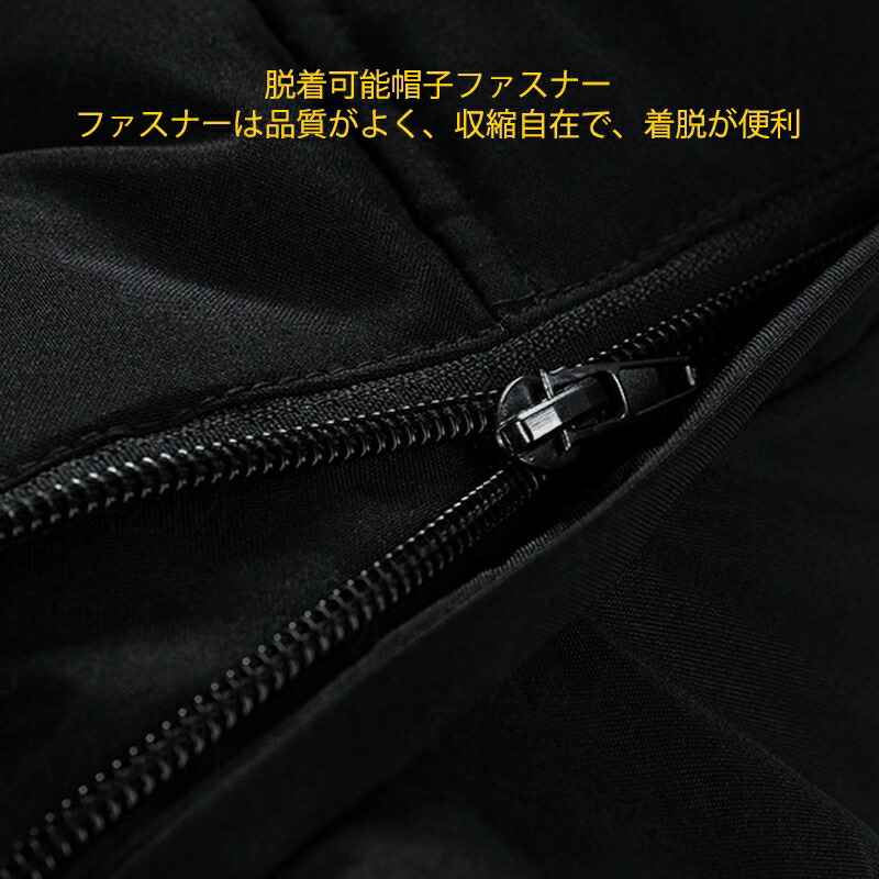 厚手な素材と高品質なダウン綿の組み合わせにより、優れた保温性を実現しました。取り外し可能なフードは、風の強い日や雨の日にも便利で、お好みに合わせて装着することができます。