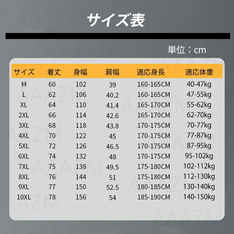 7XL [着丈約75cm 肩幅約49.5cm 身幅約138cm 身長約175-180cm 体重約102-112kg]