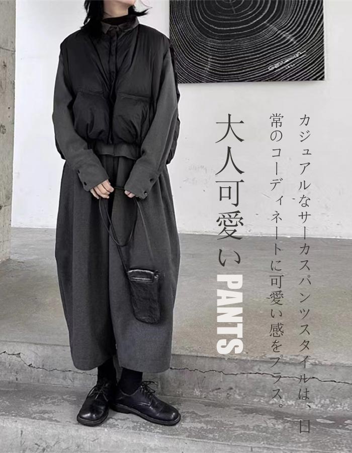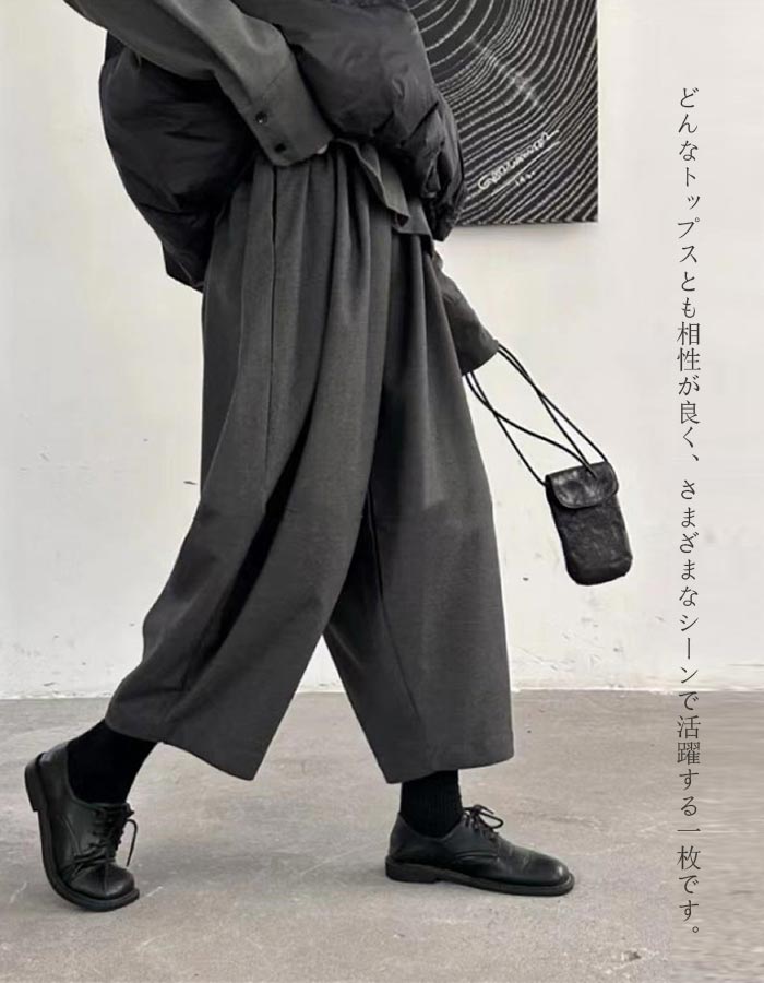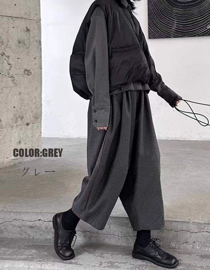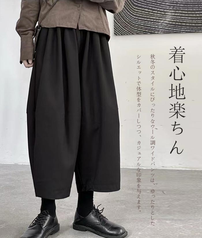 ワイドパンツ レディース 秋冬 ウール ボトムス キュロットスカート 続々入荷中 ブラック グレー