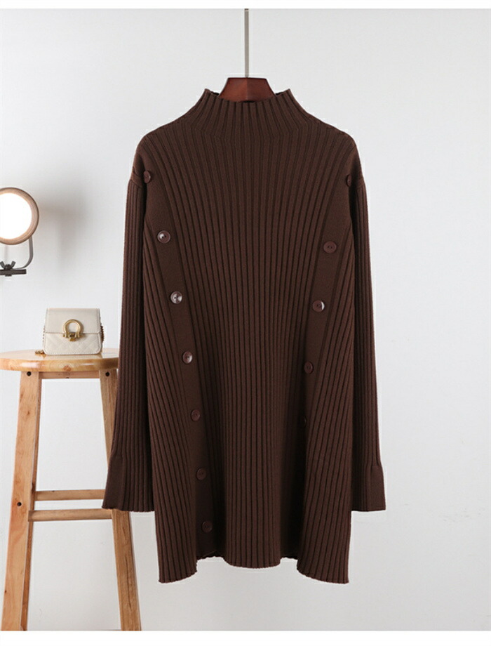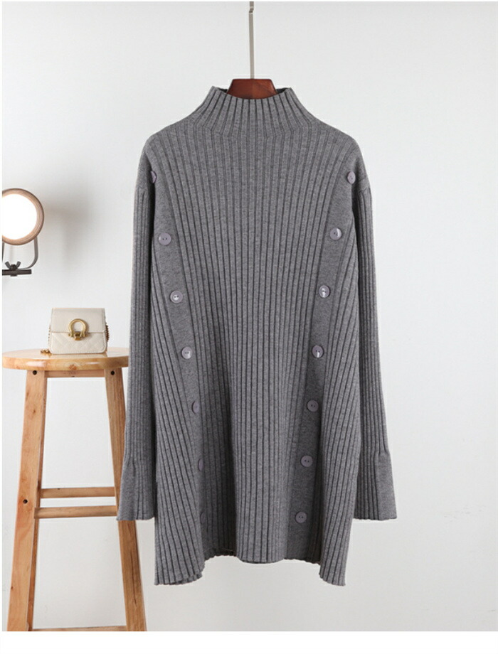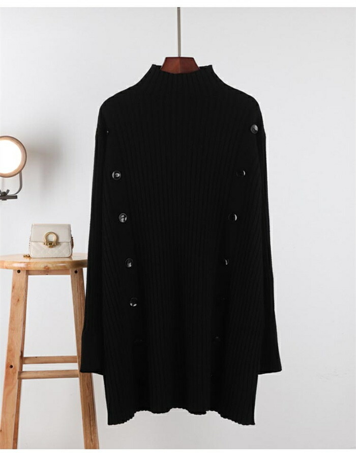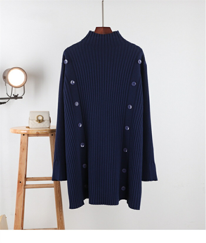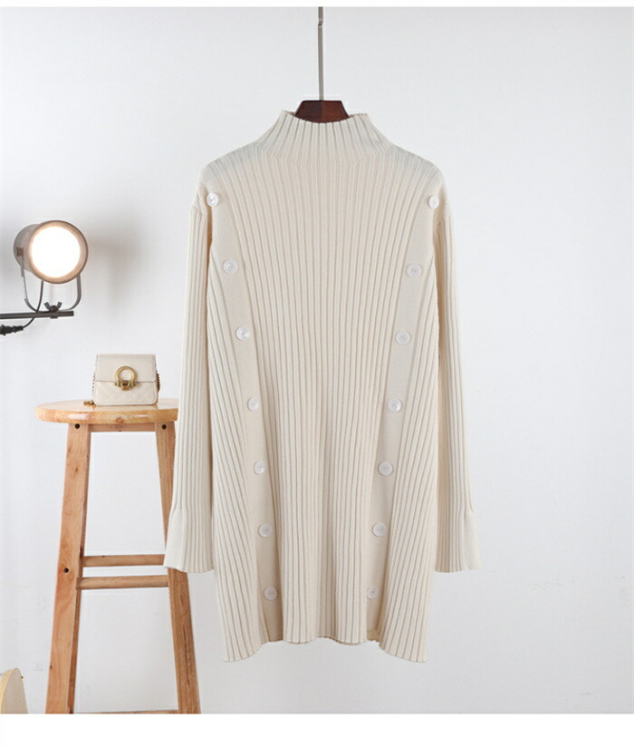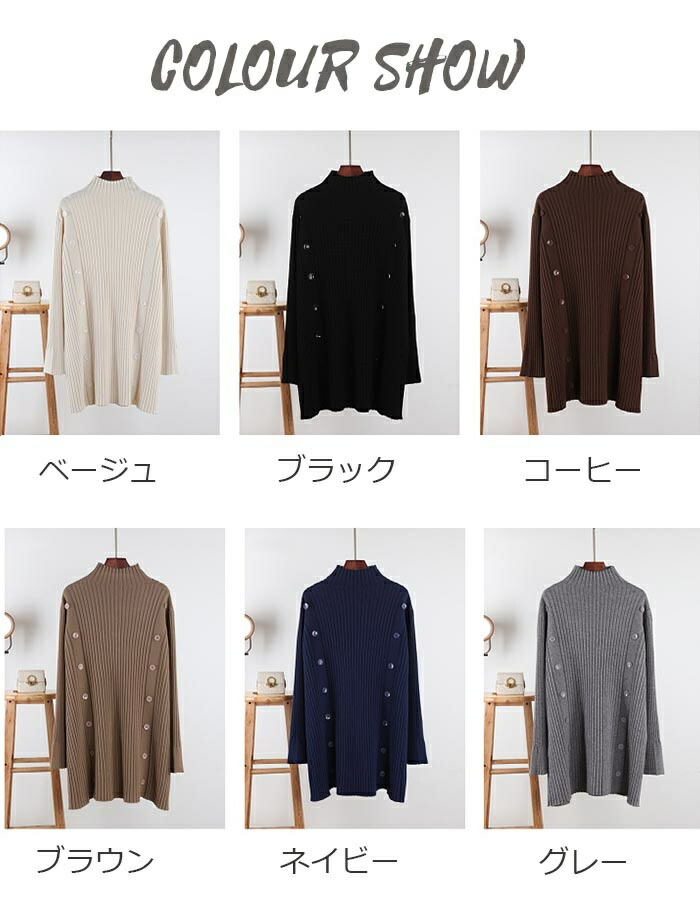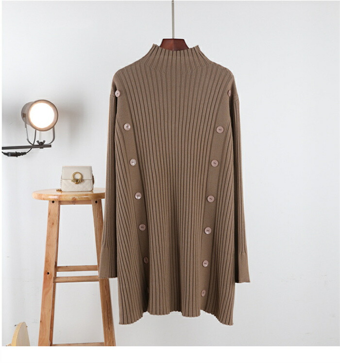 ニット セーター レディース ニットセーター 秋冬 ロングニット ワンピース チュニック 長袖 ロング丈セーター トップス リブ編み プチハイネック カジュアル ニットソー