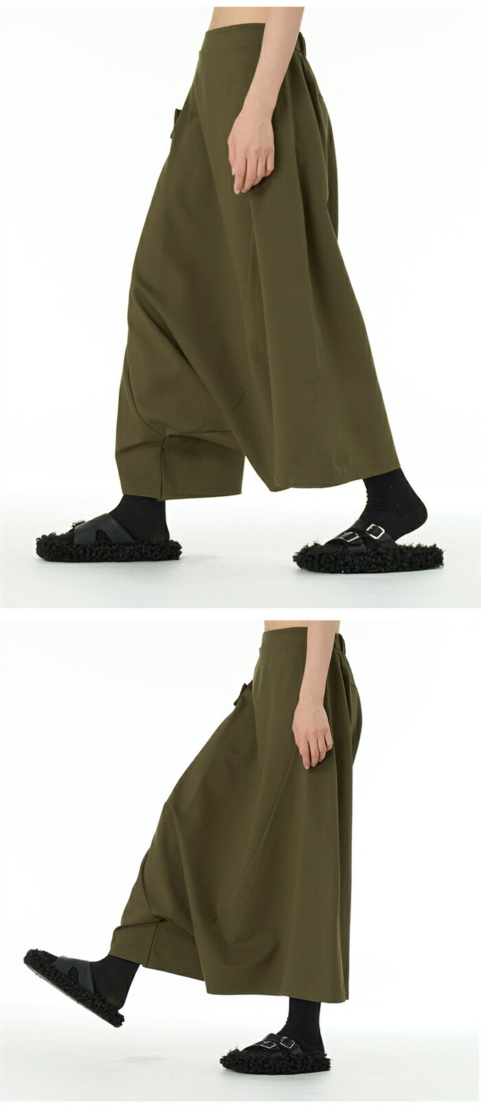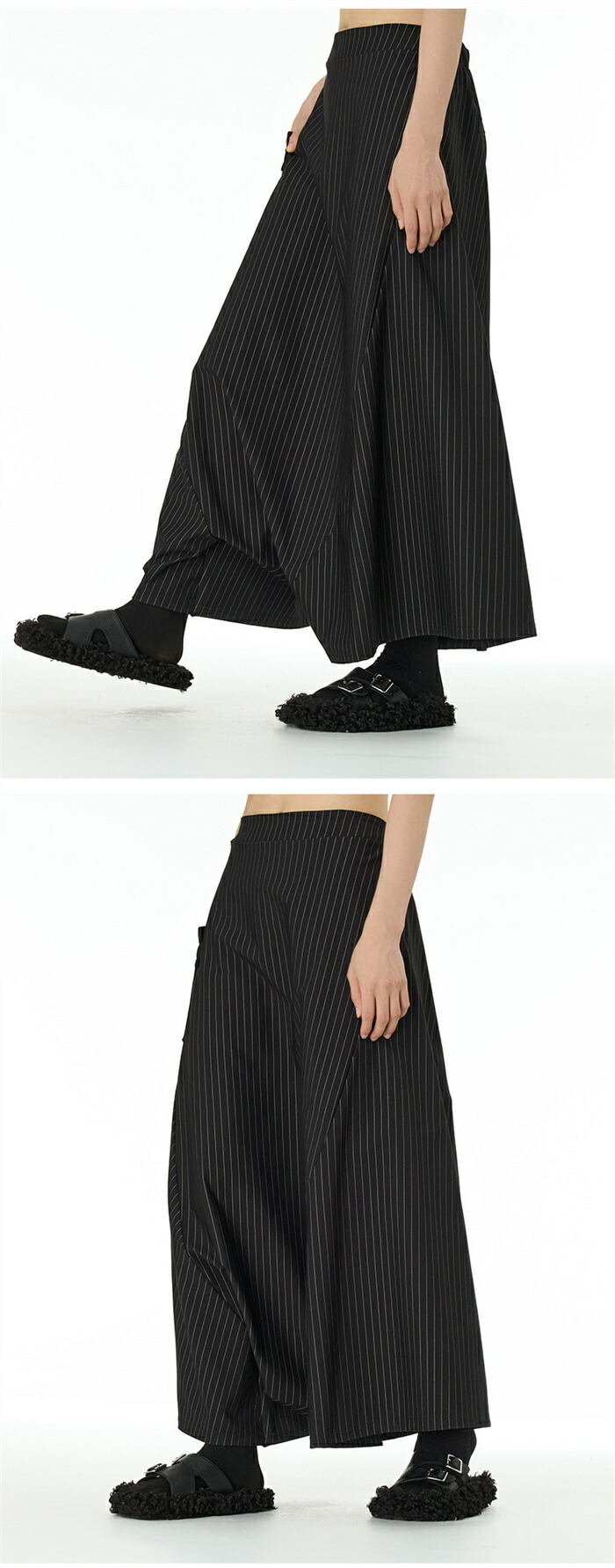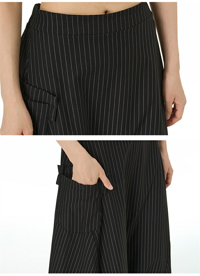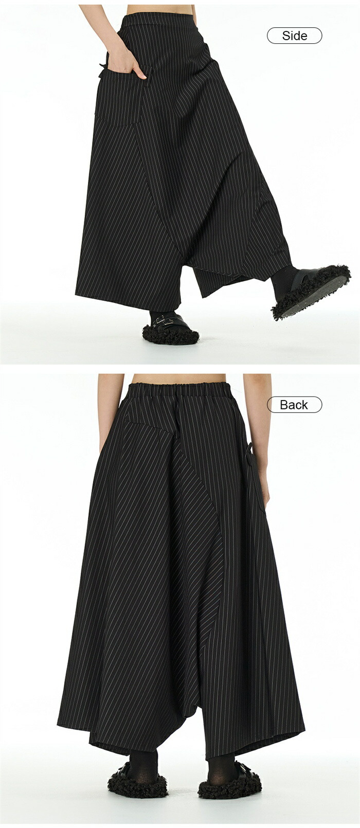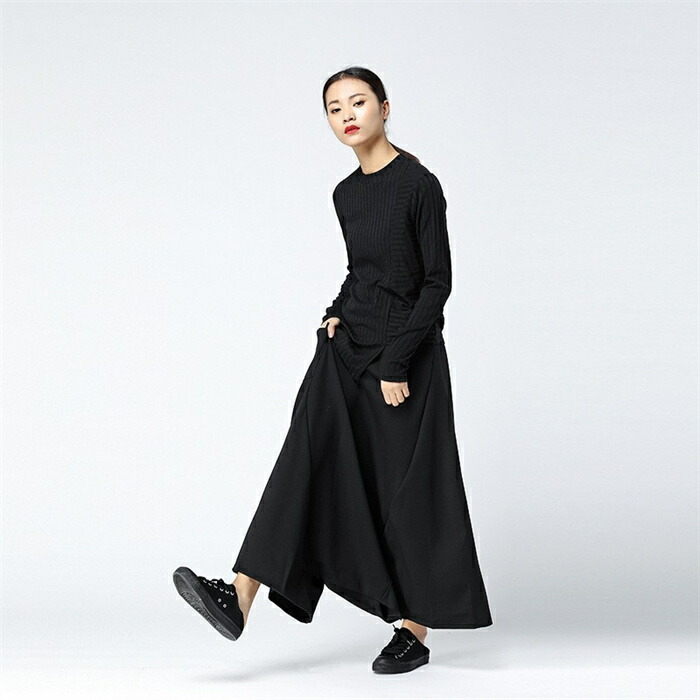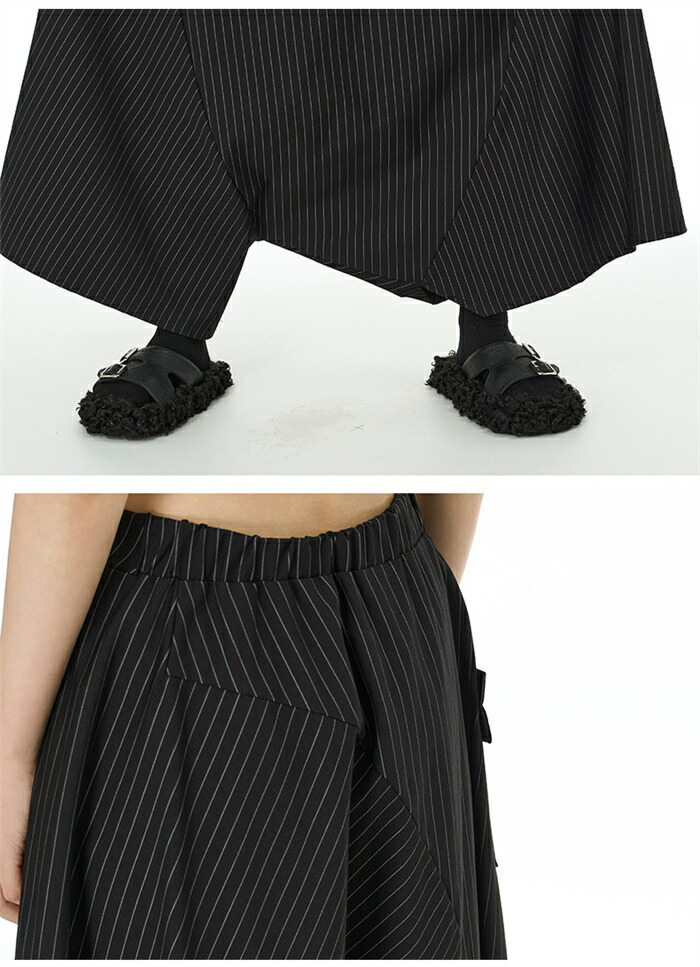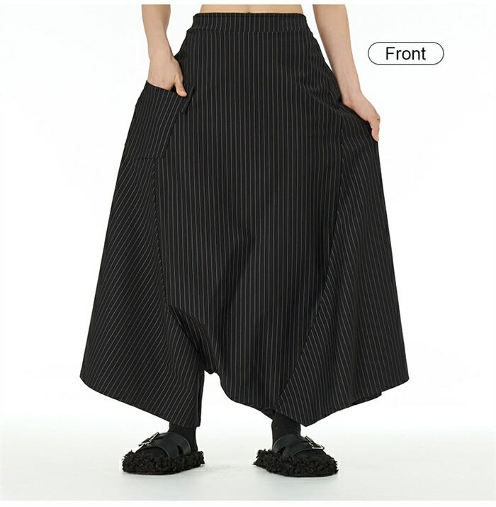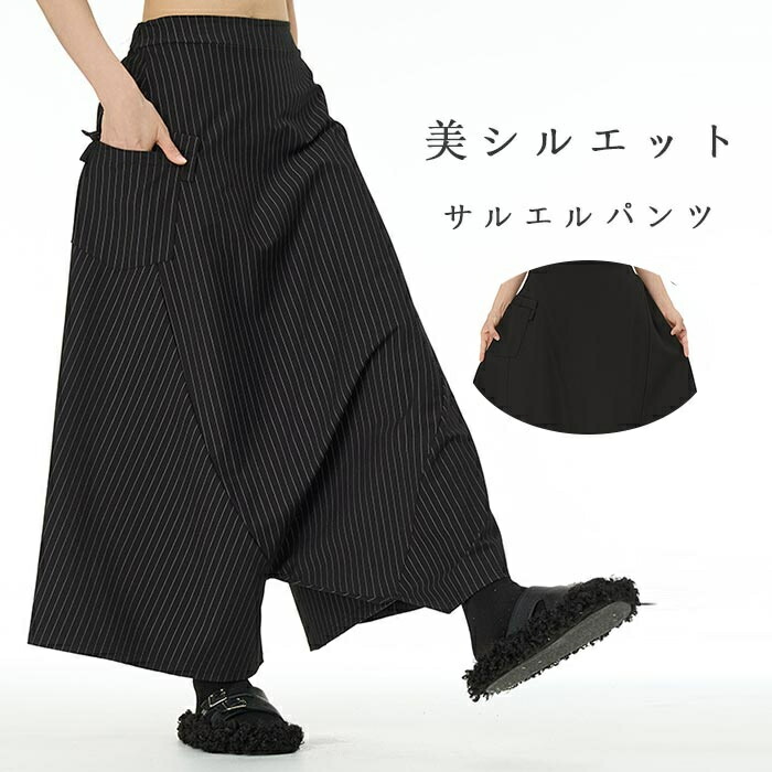 サルエルパンツ キュロット パンツ レ レディースファッション 続々登場 ブラック ストライプ カーキ ダークグレー