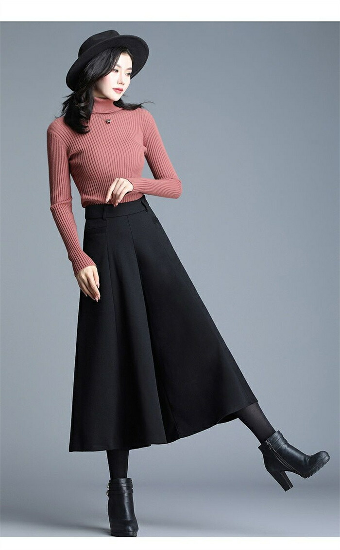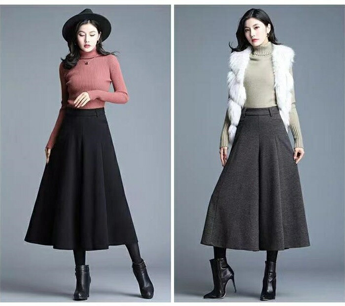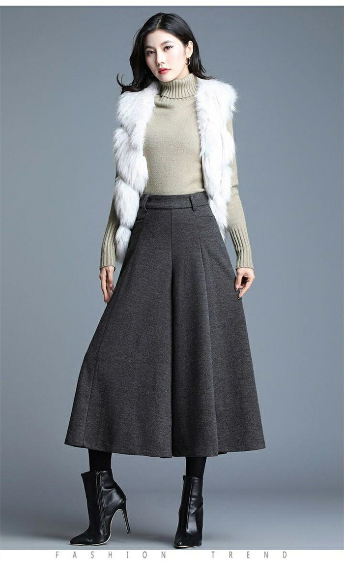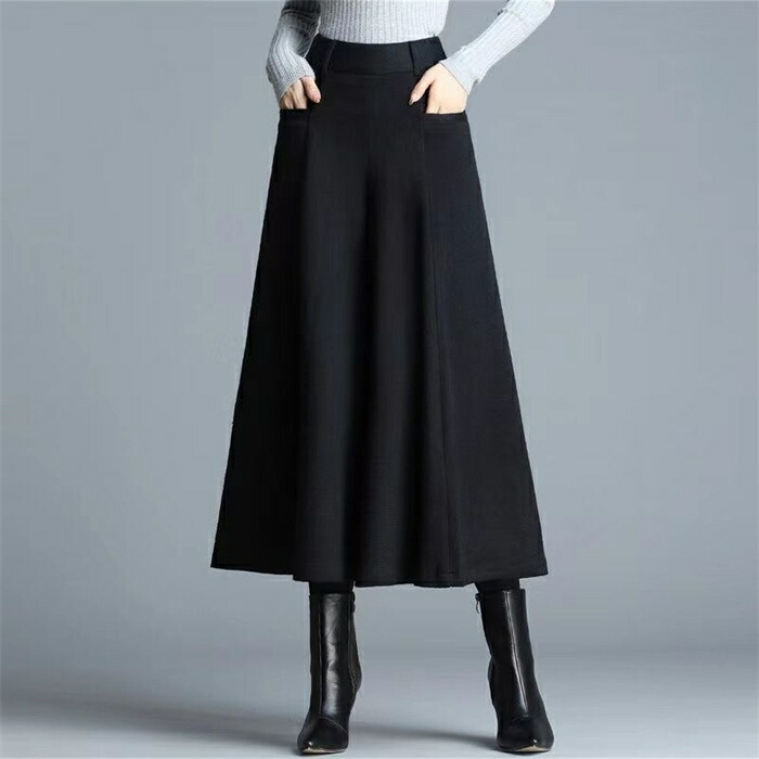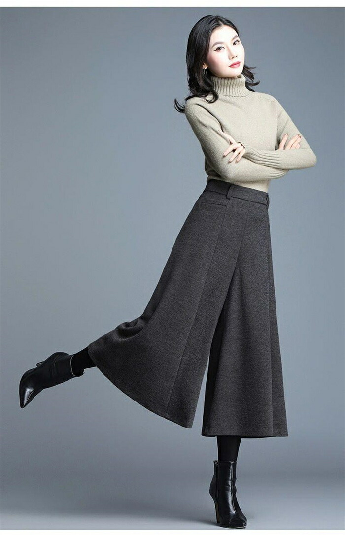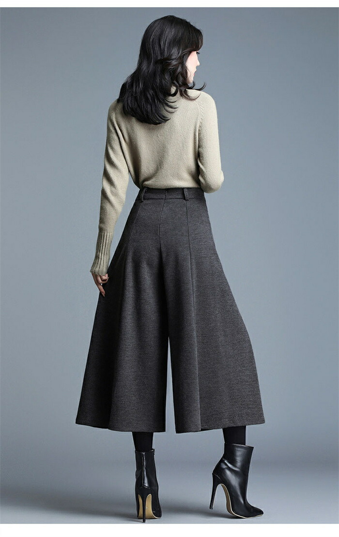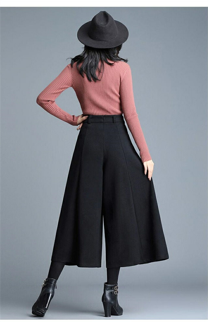 ワイドパンツ 九分丈 レディース パン ボトムス キュロットスカート 早い者勝ち ブラック グレー M L XL