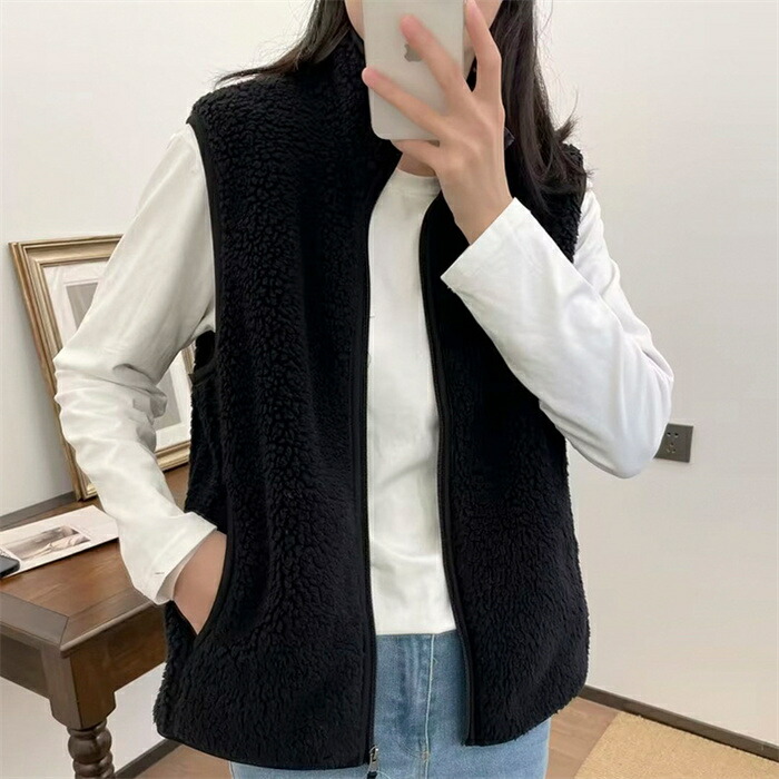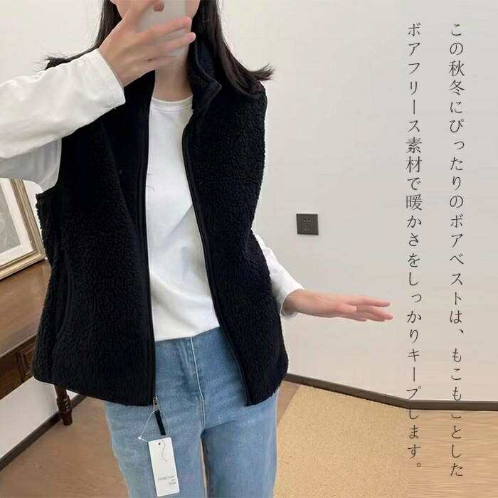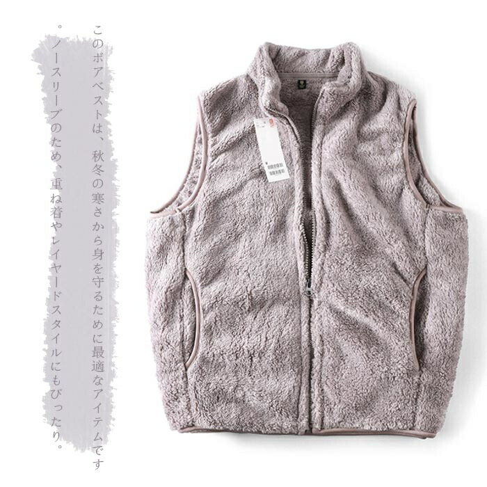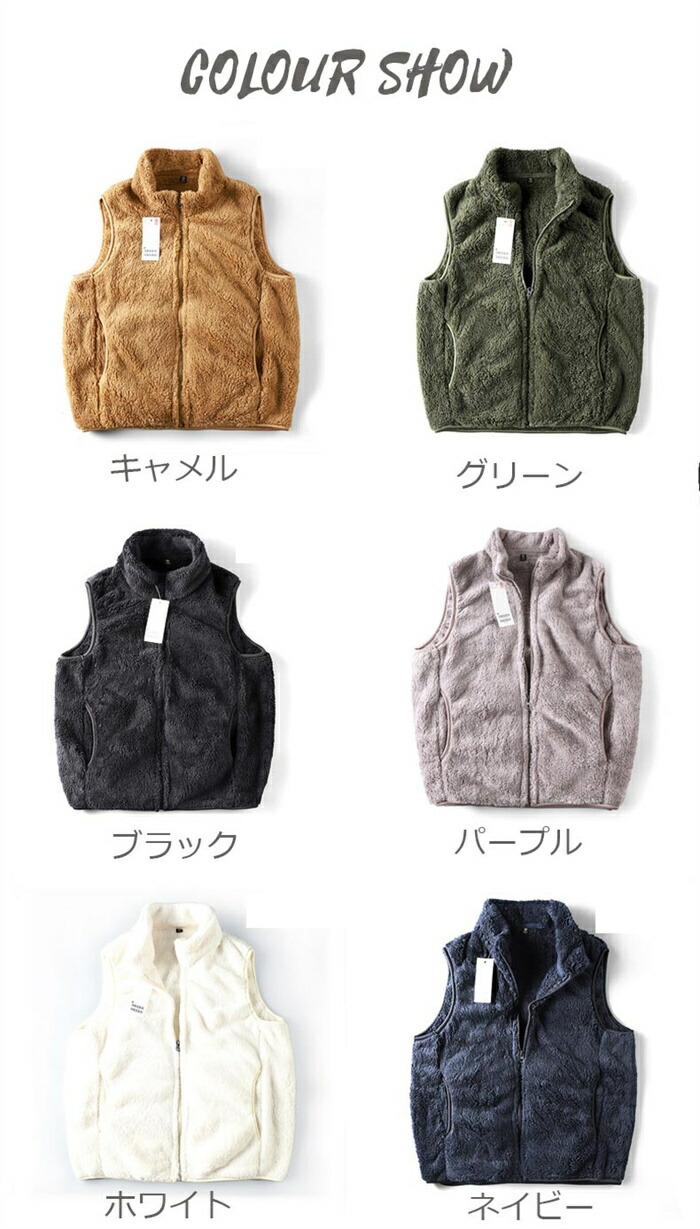 ボアベスト レディース 秋冬 ボアフリ トップス ベスト 早い者勝ち キャメル グリーン ブラック パープル ホワイト ネイビー S M L XL