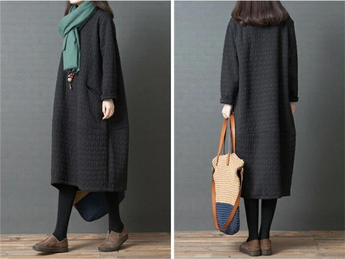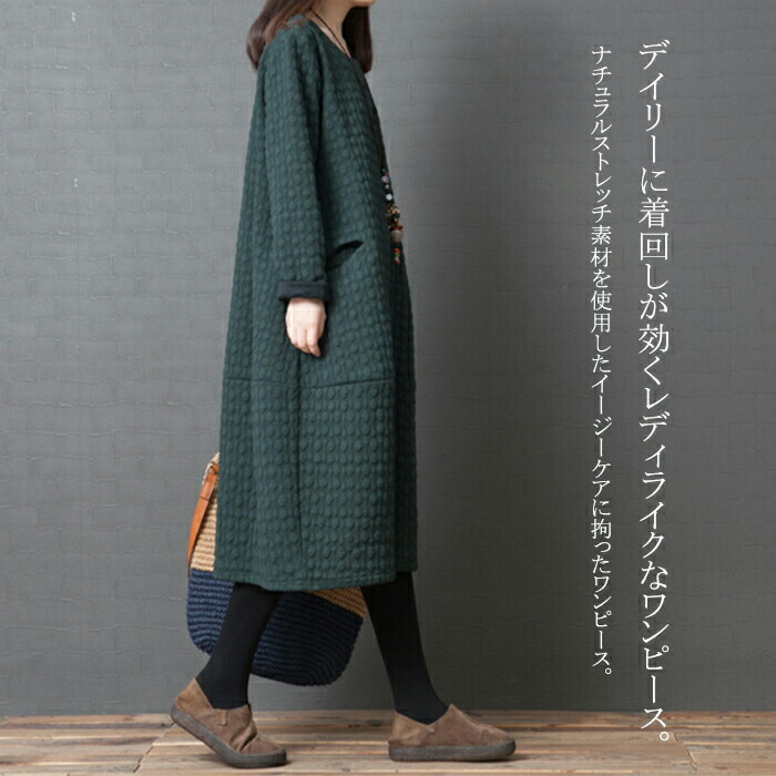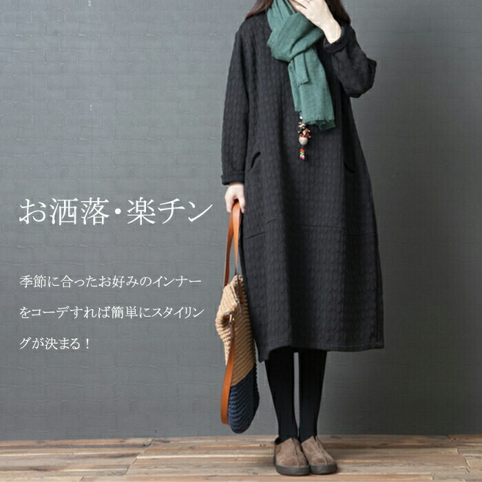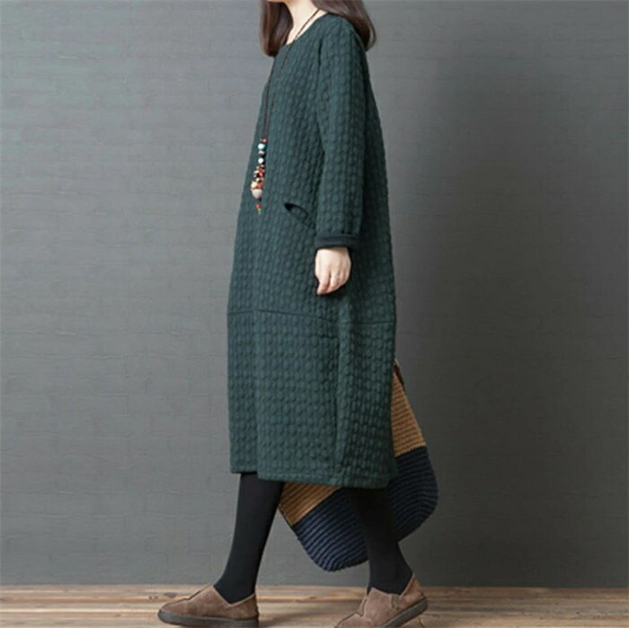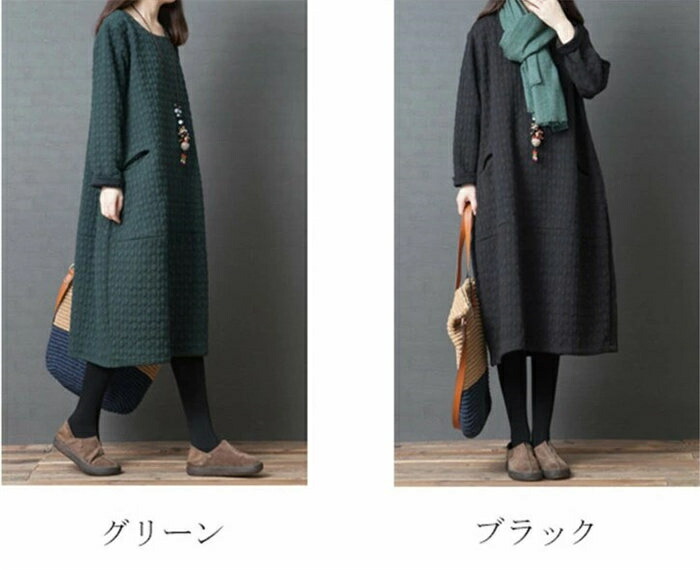 チュニック 長袖ワンピース レディース レディースファッション 新登場! ブラック グリーン M L XL 2XL