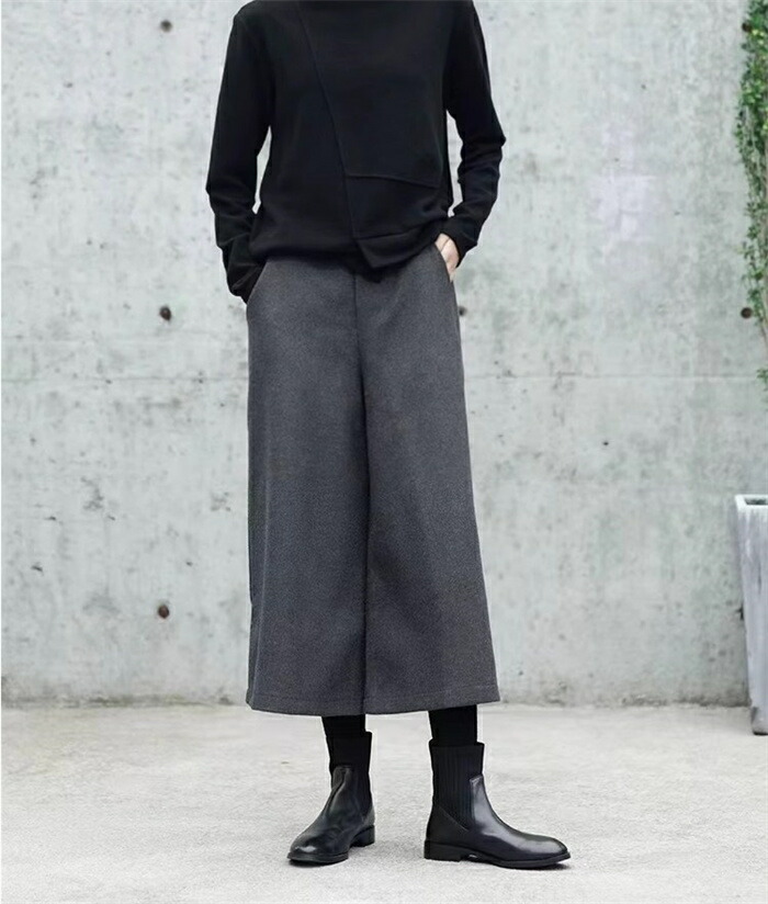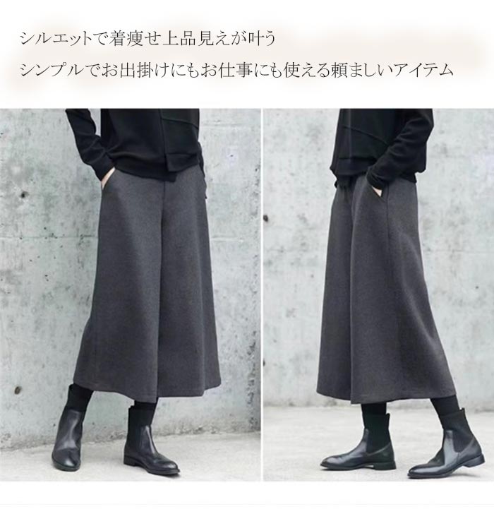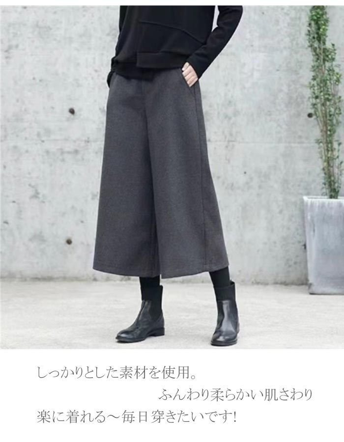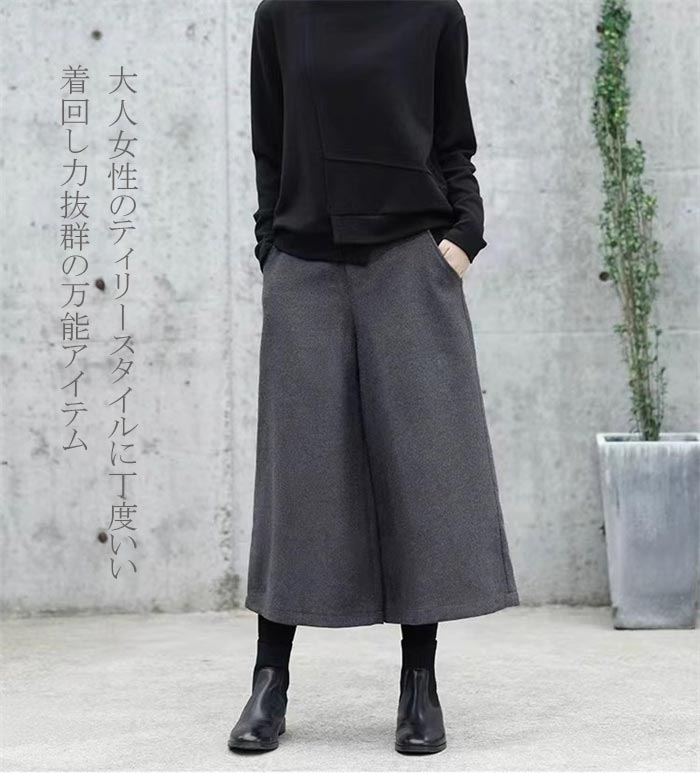 ワイドパンツ ウール調 レディース 冬 ボトムス パンツ 超目玉商品 ブラック グレー M L XL
