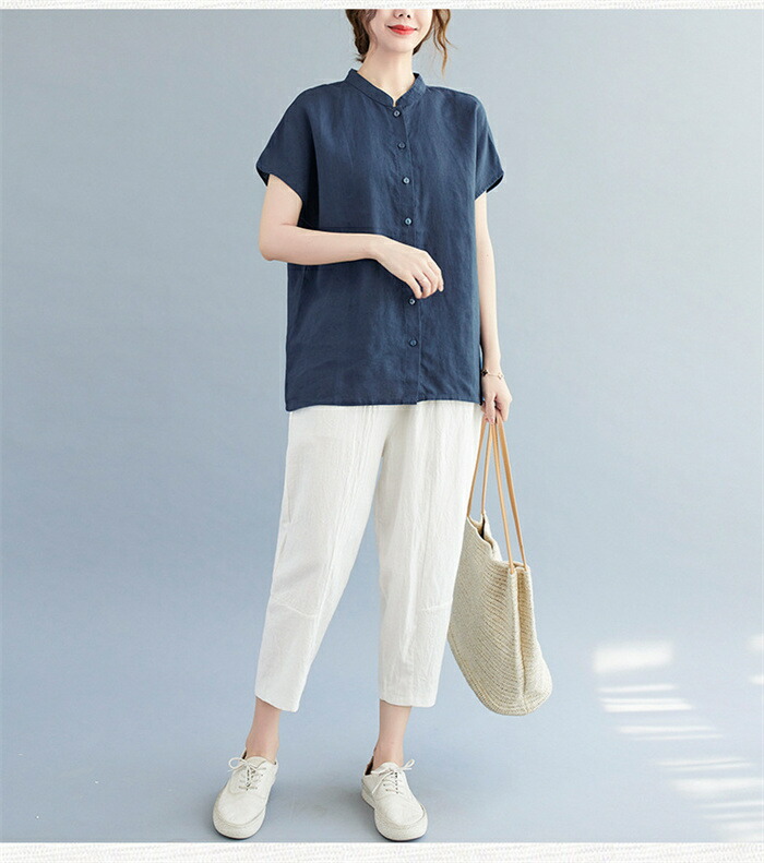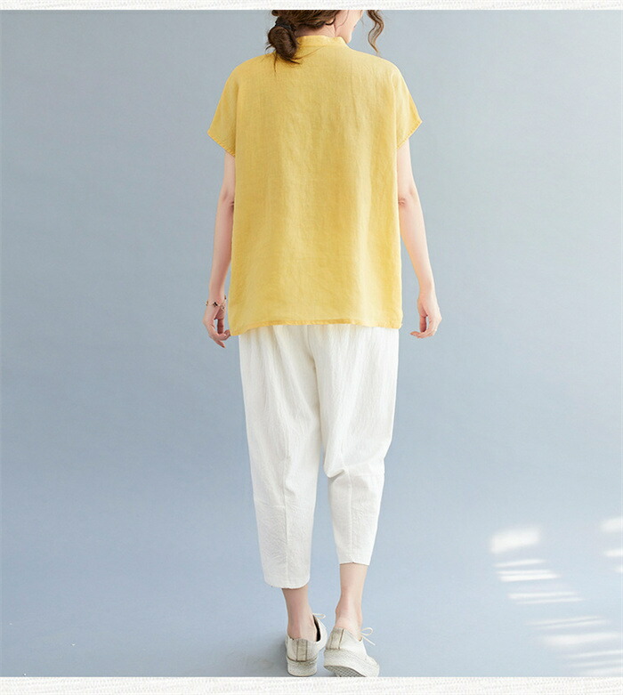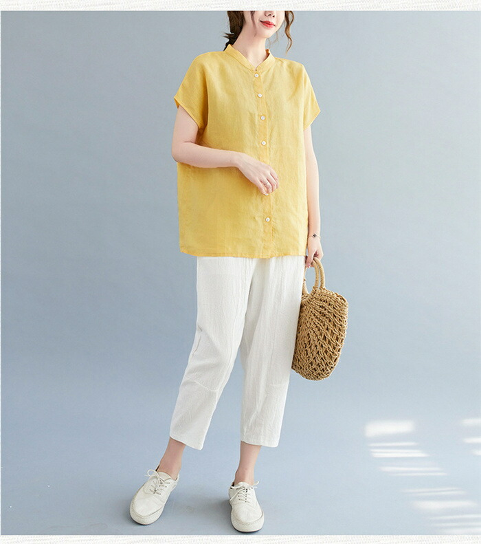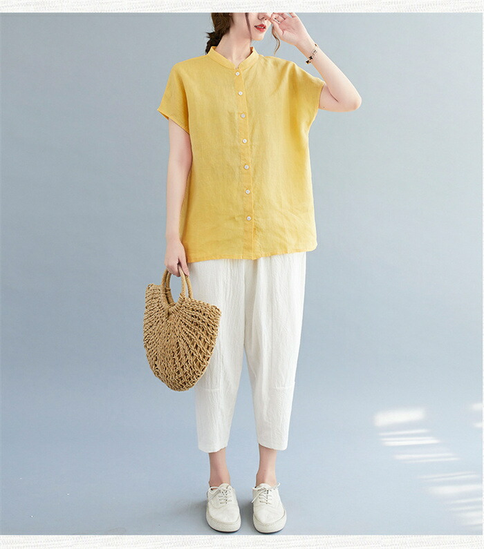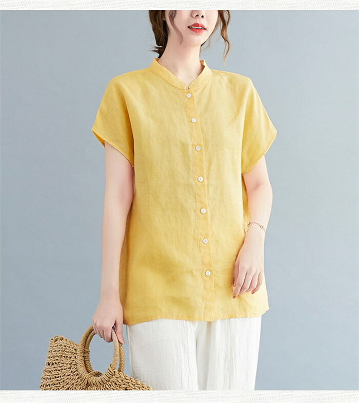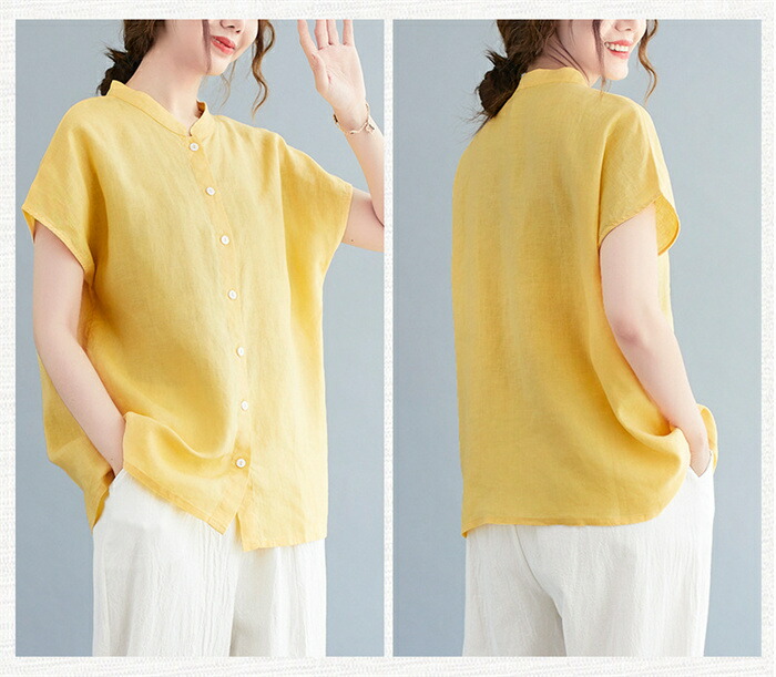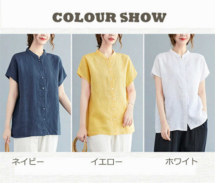 半袖シャツ シャツ トップス レディー トップス シャツ ブラウス 超目玉商品 ネイビー イエロー ホワイト M L XL 2XL