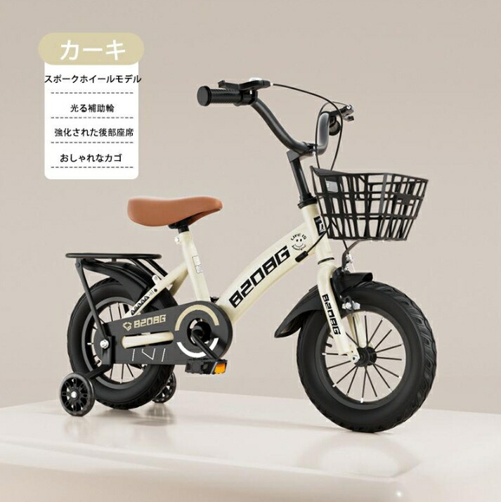 子供用自転車 コンパクト12インチ14 カーキ/後部座席+光る補助輪 ライトブルー/後部座席+光る補助輪 ライトグリーン/後部座席+光補助輪 カーキ/ベーシックモデル ライトブルー-/ベーシックモデル ライトグリーン/ベーシックモデル 12インチは85cm-105cm 14インチは95cm-105cm 16インチは105cm-120cm 18インチは105cm-130cm 20インチは125cm-145cm