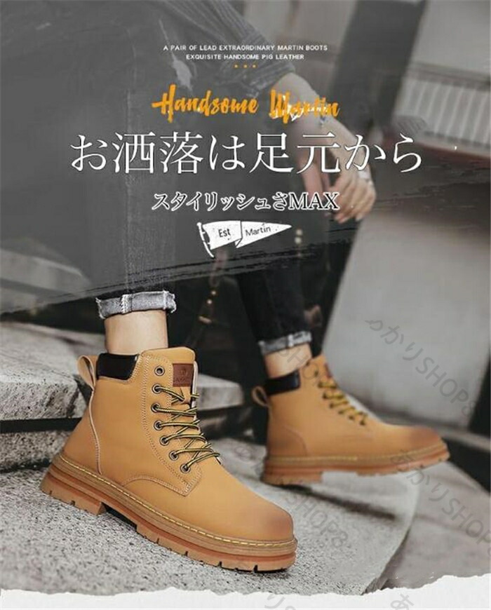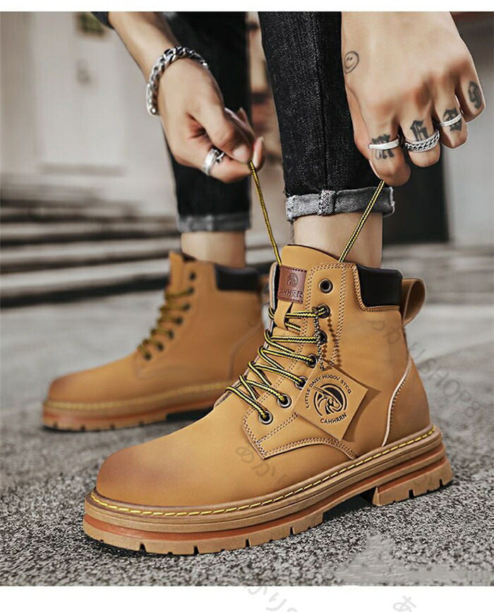 マーチンブーツ ハイカットワークブーツ 靴 大人気! イェロー グレー グリーン ブラック 39(内寸24.5cm) 40(内寸25cm) 41(内寸25.5cm) 42(内寸26cm) 43(内寸26.5cm) 44(内寸27cm) 45(内寸27.5cm) 46(内寸28cm) 47(内寸28.5cm) 48(内寸29cm)