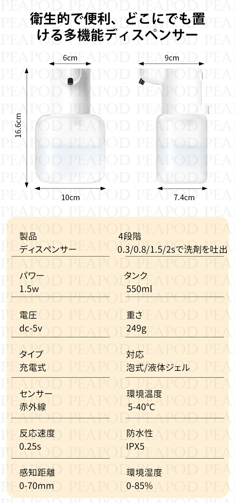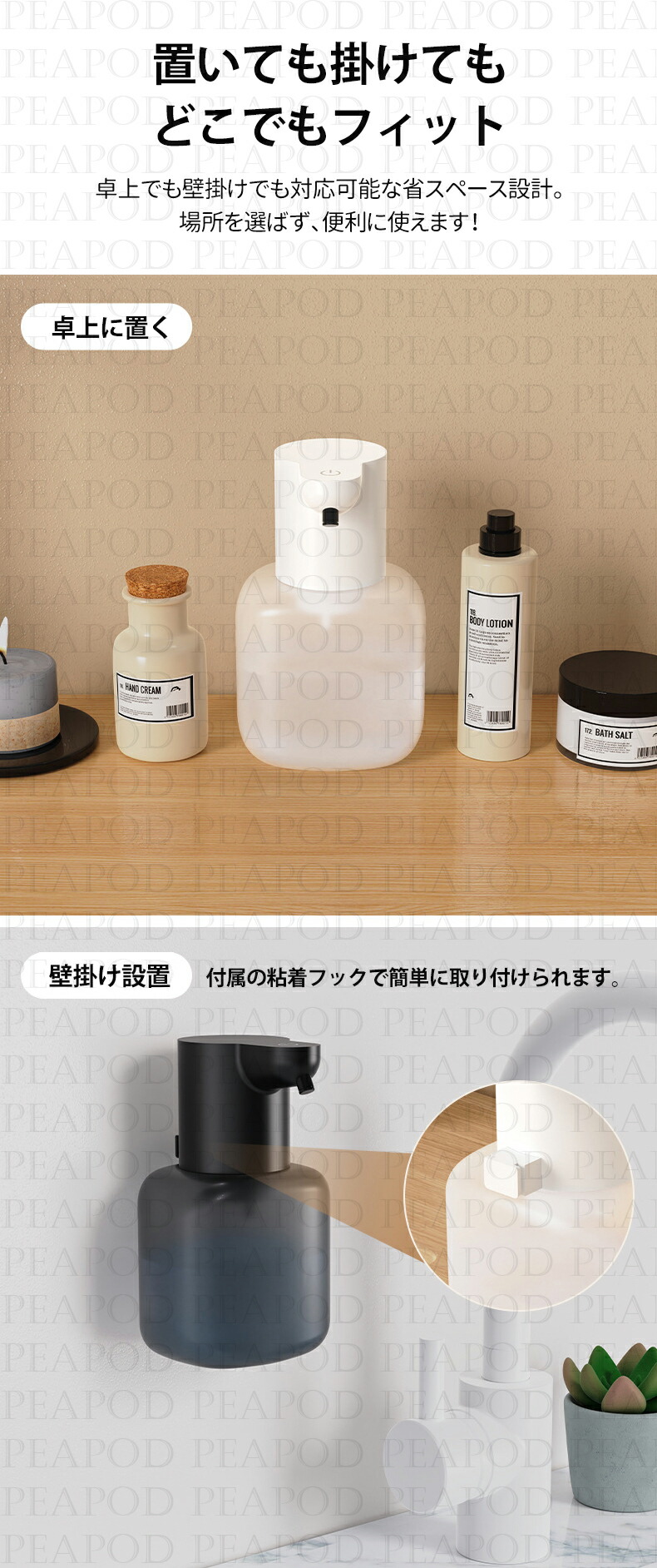自動 充電式 壁掛け 卓上 キッチン 泡 液体ジェル 白 黒