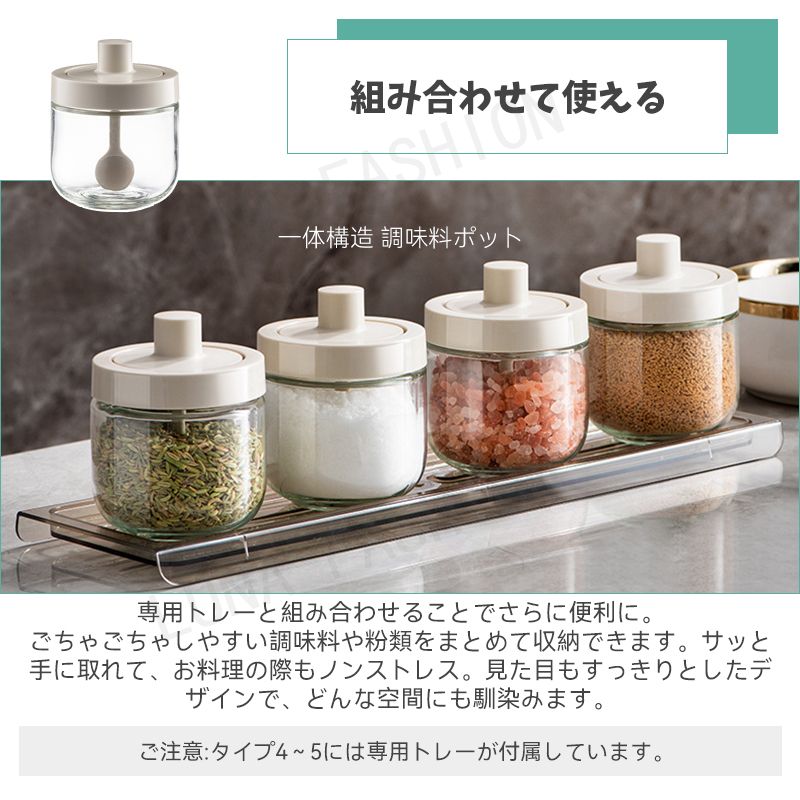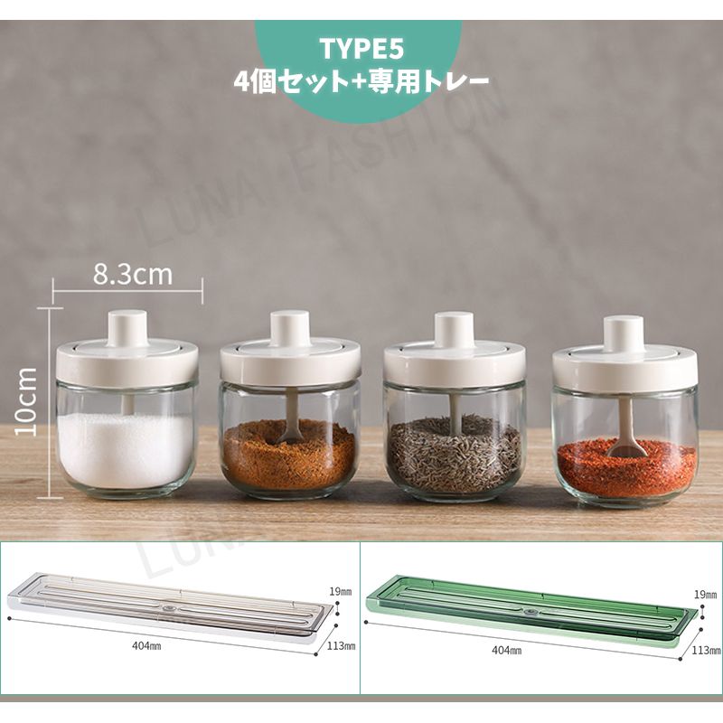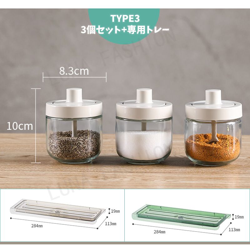 調味料入れ スプーン付き ガラス 密閉 保存容器 調味料入れ 調味料入れセット 豊富 2個セット 3個セット 3個セット+ホワイトトレー 3個セット+グリーントレー 4個セット 4個セット+ホワイトトレー 4個セット+グリーントレー