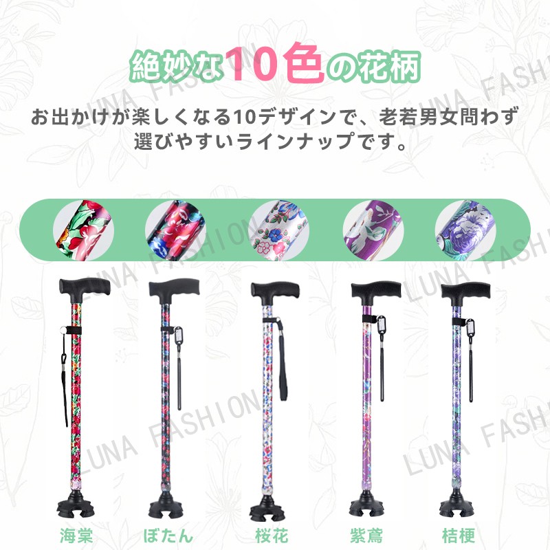 母の日 父の日 杖 軽量 女性用 つえ 介護 ステッキ おしゃれ 花柄 伸縮 伸縮式 自立式 自立杖 収納袋 歩行補助 長さ調節 補助 レディース 婦人用 敬老の日 誕生日 プレゼント バレンタイン ギフト 人気