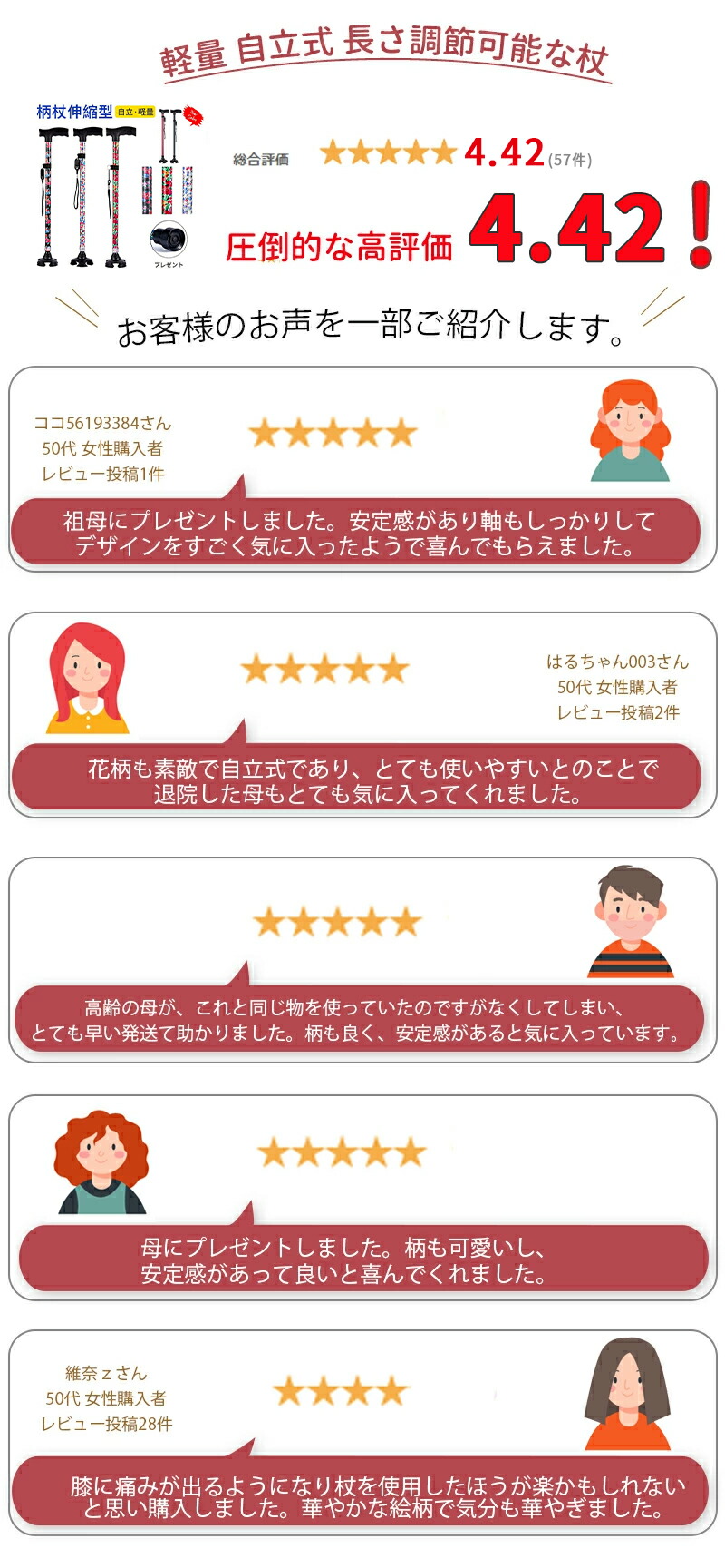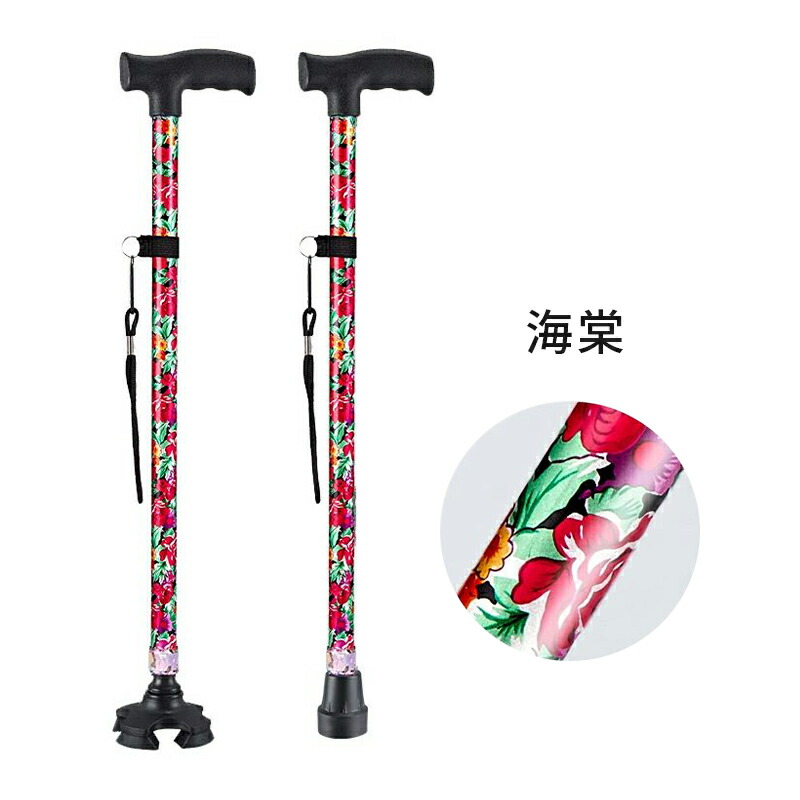 杖 軽量 介護 女性 男性 自立 伸縮 海棠 ぼたん 桜花 桔梗 紫鳶 無地-ブラック 無地-レッド 多花 ツツジ コウシンバラ