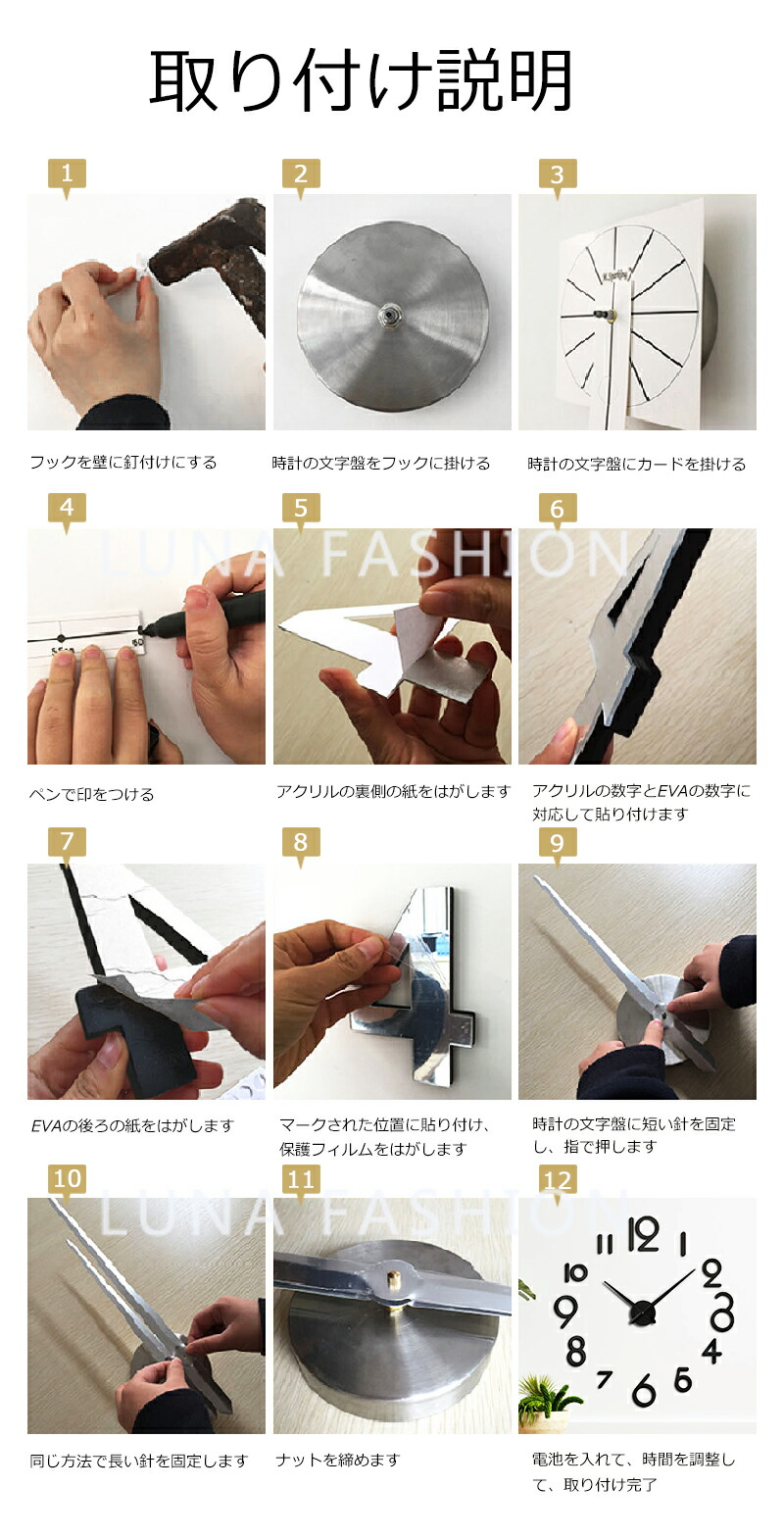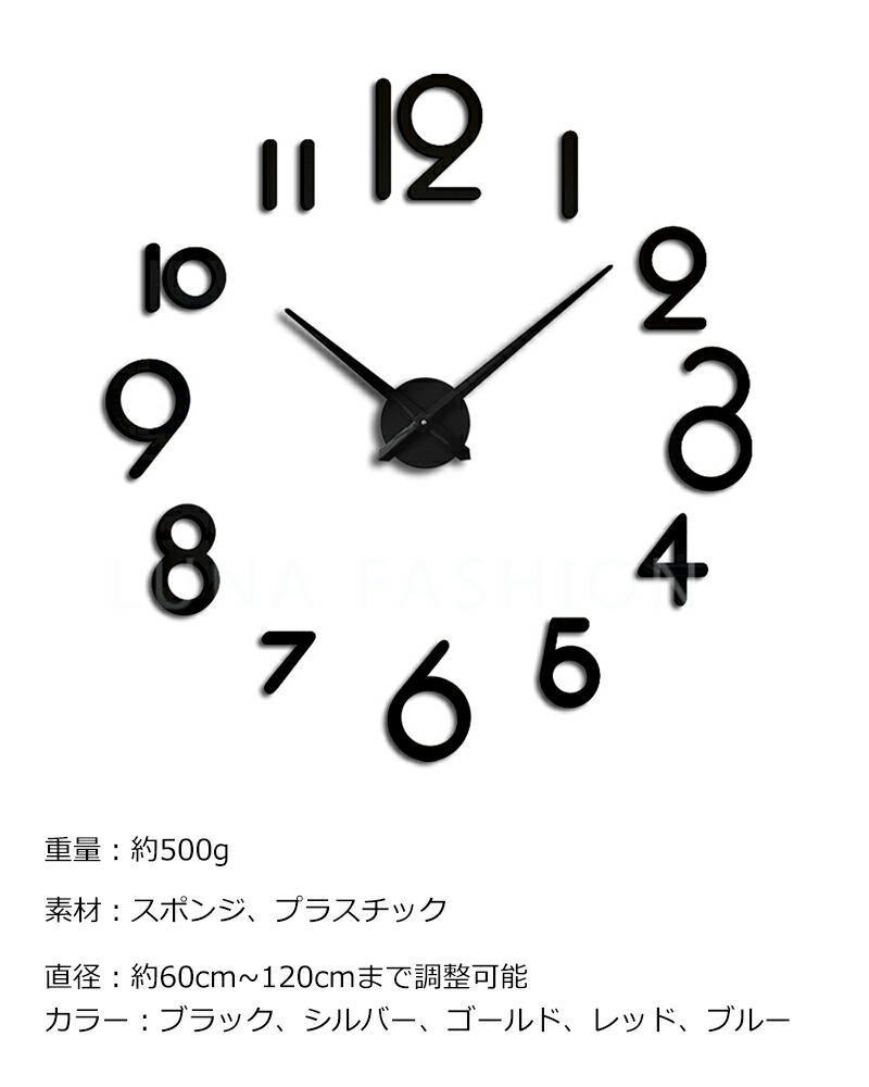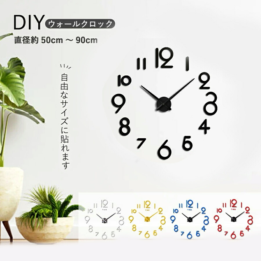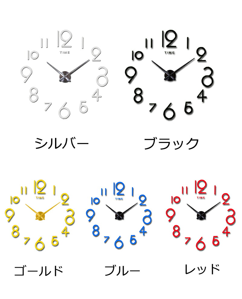 DIY ウォールクロック 壁時計 ウォ ブラック シルバー ゴールド レッド ブルー