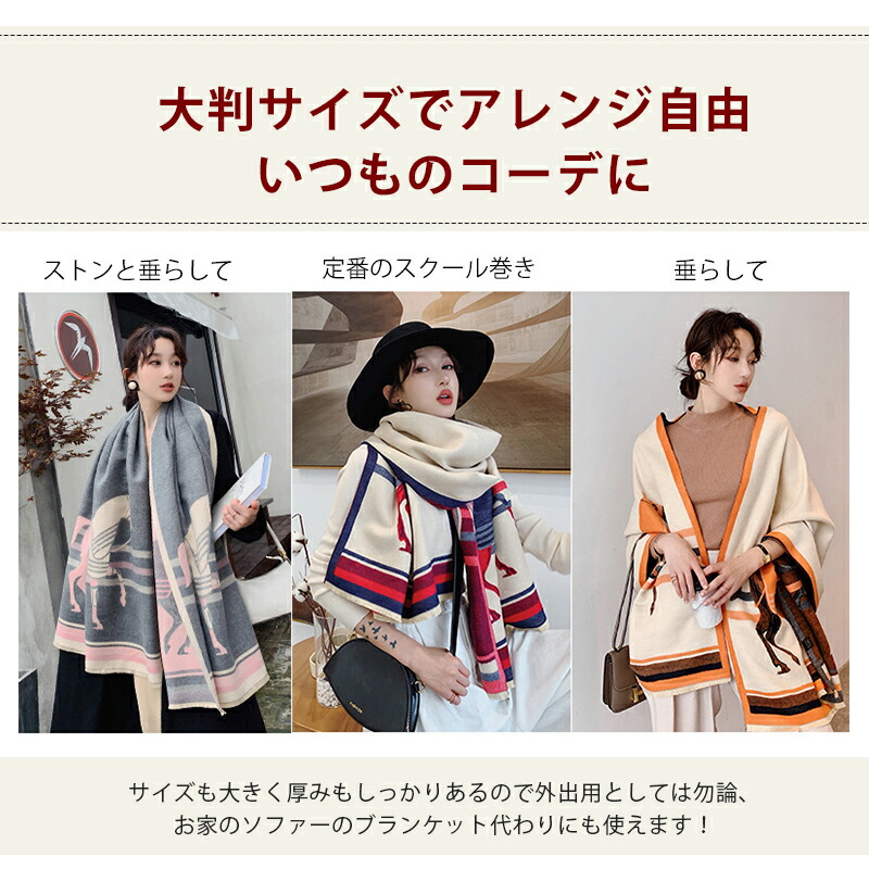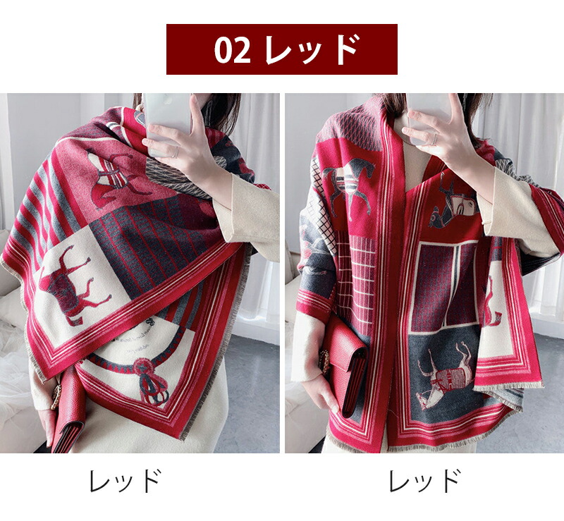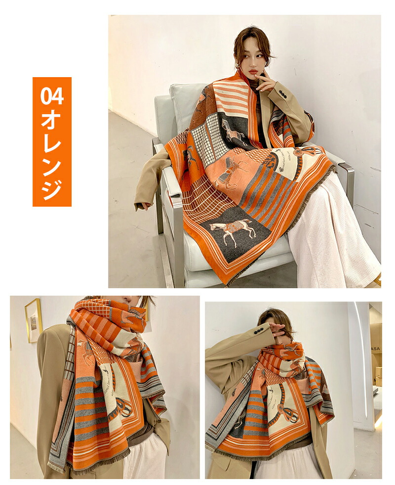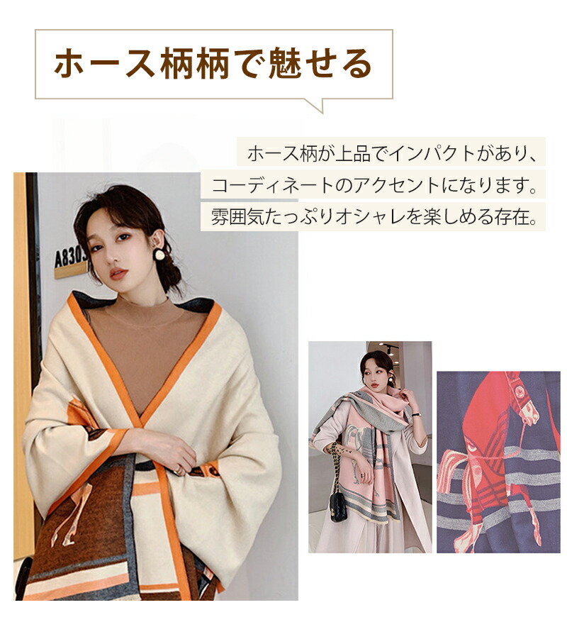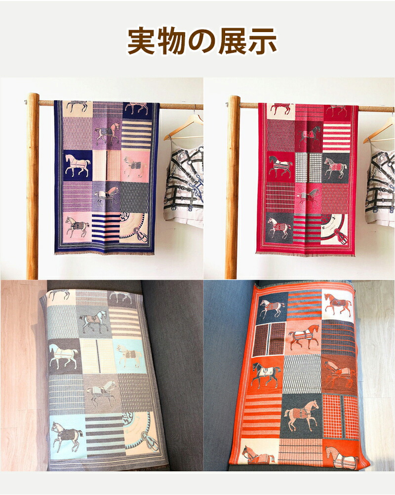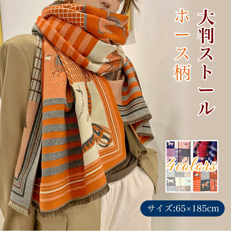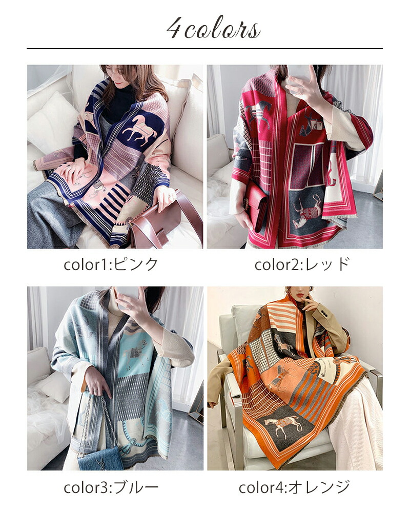 ストール 大判 厚手 ホース柄 ショー マフラー スカーフ レディースマフラー ストール 通販 ピンク レッド ブルー オレンジ