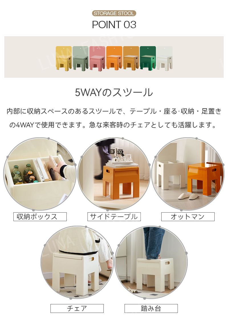 収納スツール おしゃれ オットマン ス オレンジ ホワイト ピンク イエロー グリーン 抹茶色 オークル