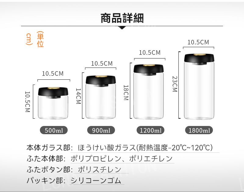 真空保存容器 ガラス ペットフード コ 保存容器 調味料入れ 保存容器 キャニスター 新登場! 500ml 900ml 1200ml 1800ml