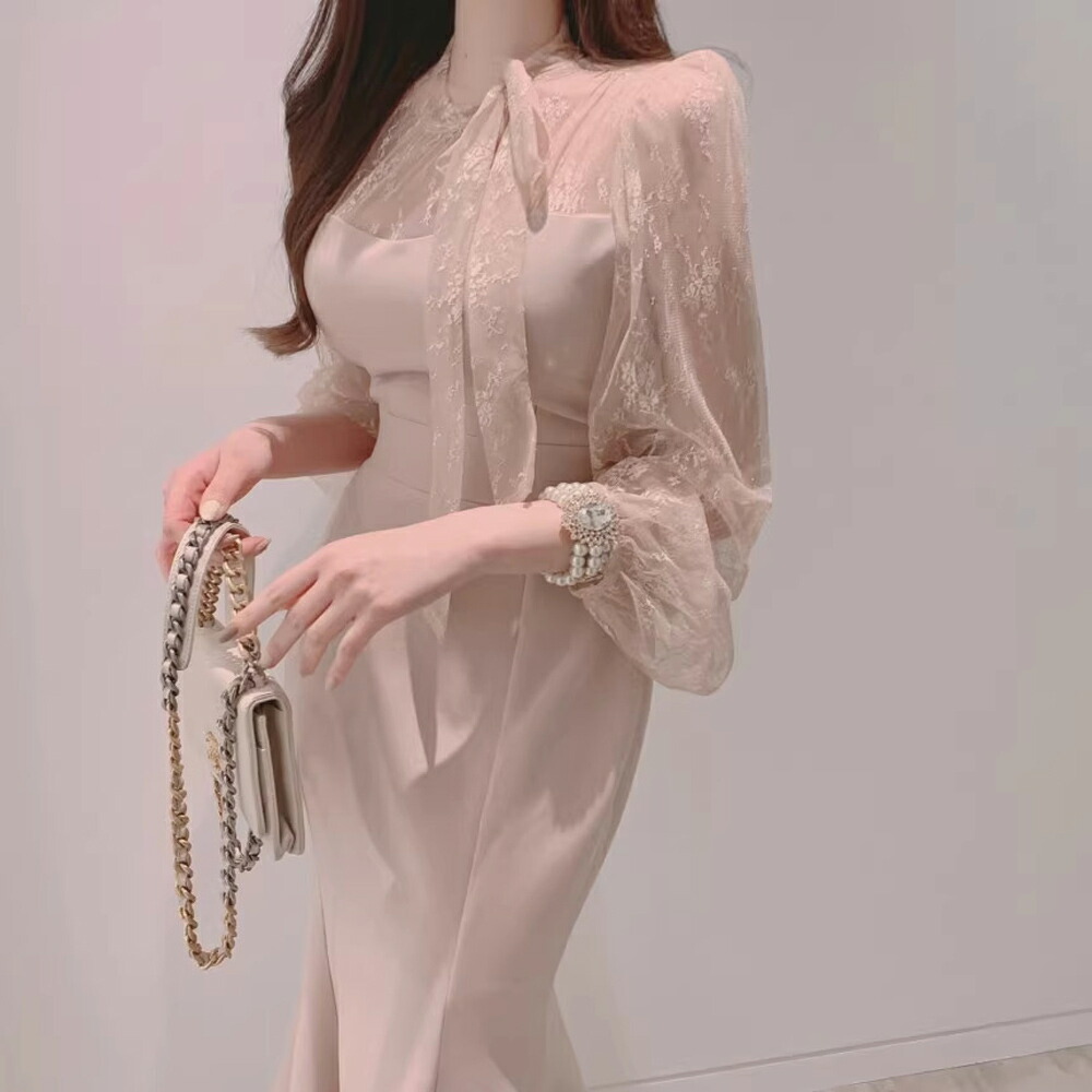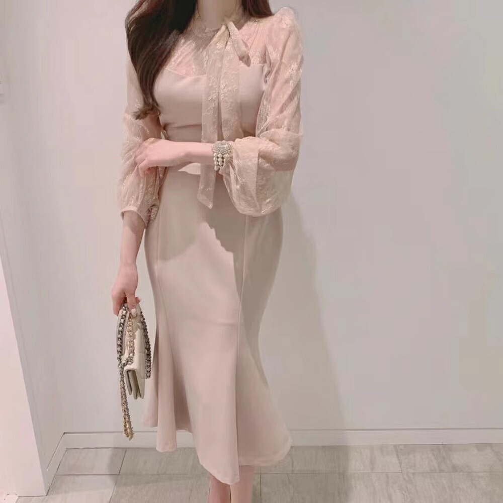 シアースリーブ ドッキングシャツ ボウタイシャツブラウス