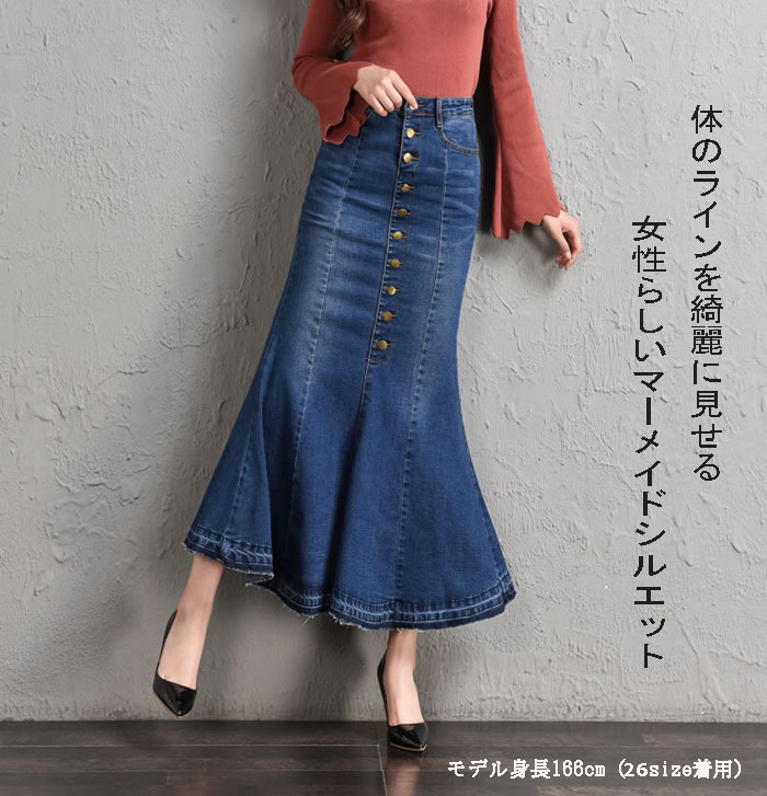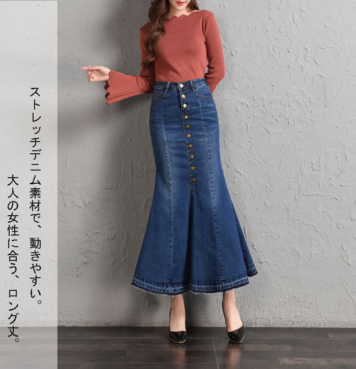 ストレッチデニム素材 マーメイドスカー レディースファッション 特集 S M L XL XXL