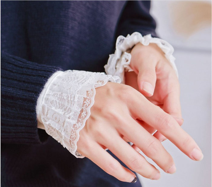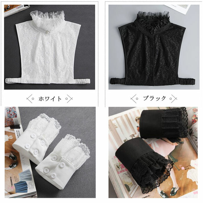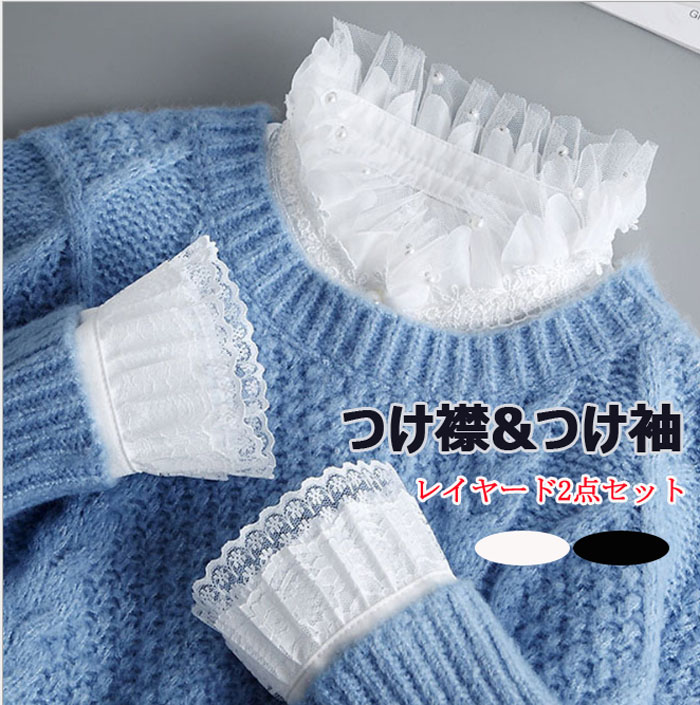 つけ襟&つけ袖2点セット 重ね着 レイ トップス Tシャツ カットソー 通販 ホワイト ブラック