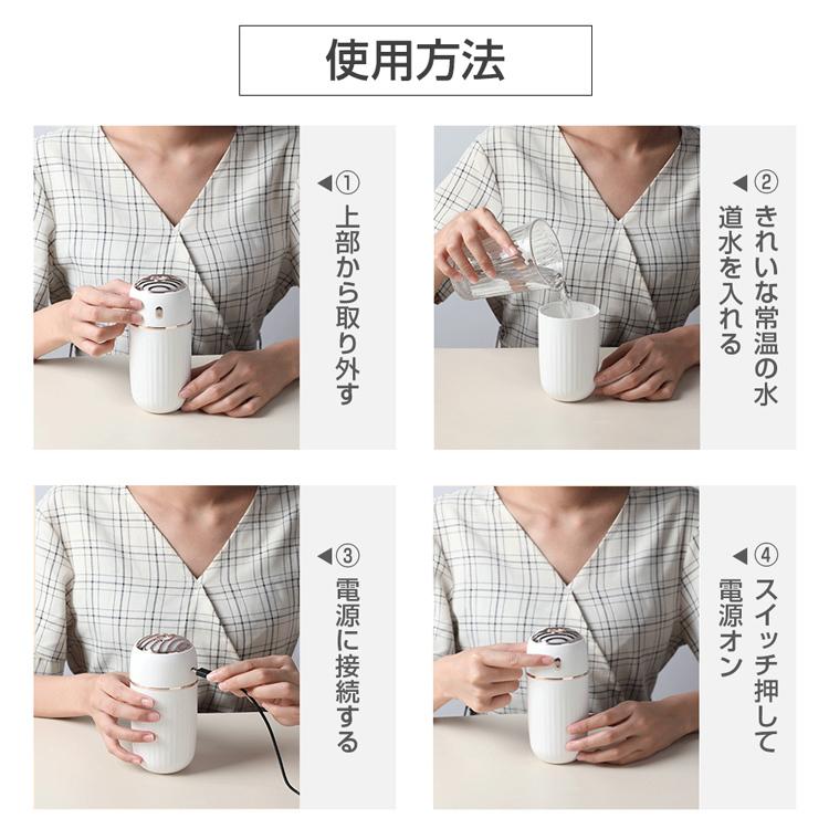 加湿器 超音波式 USB充電式 ナイト ホワイト ピンク グリーン