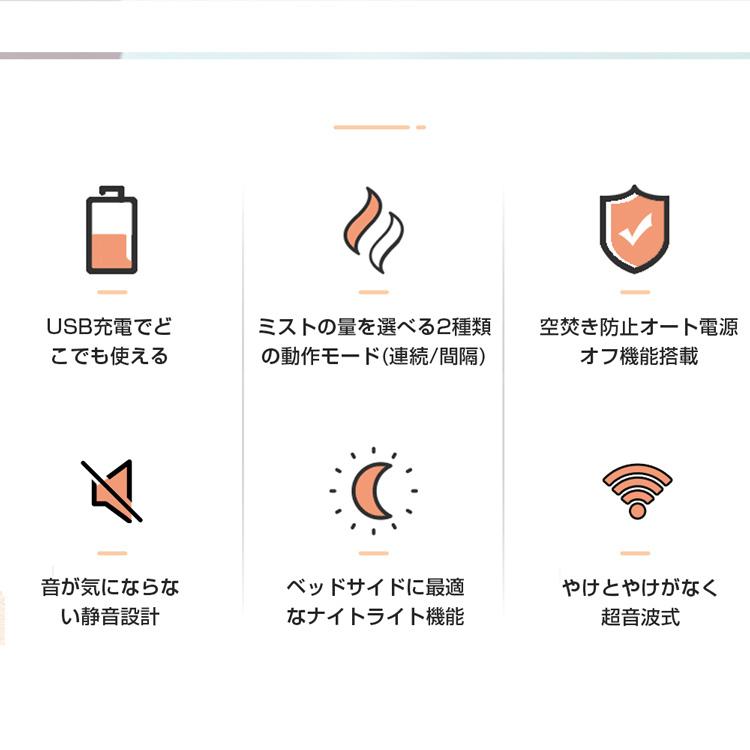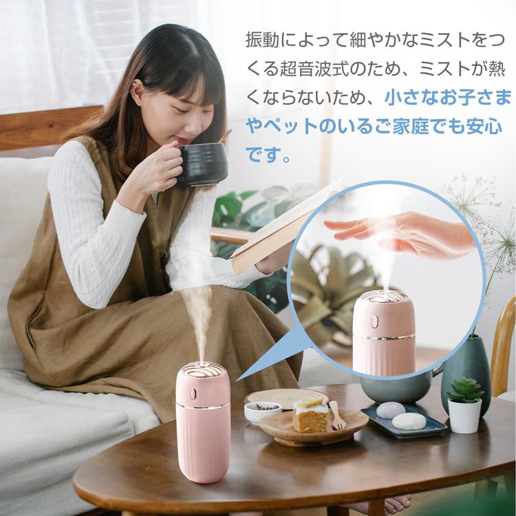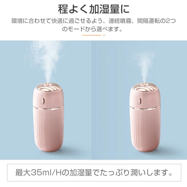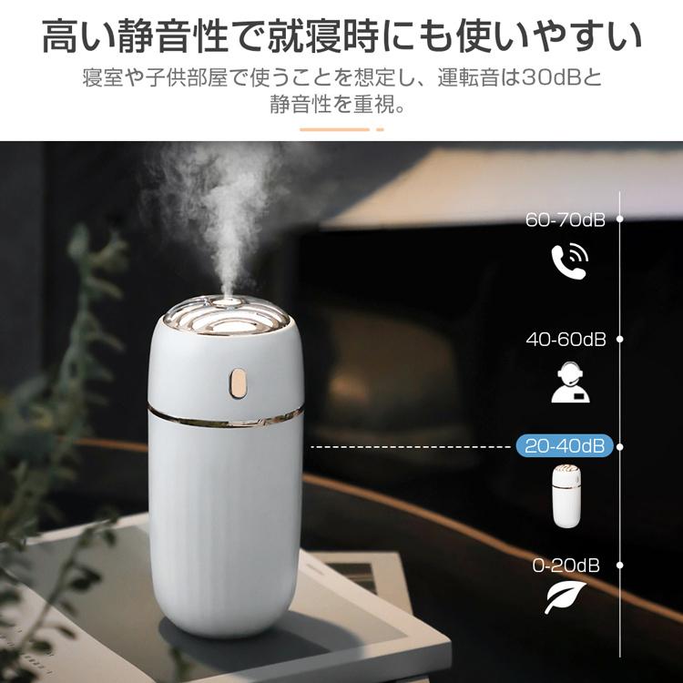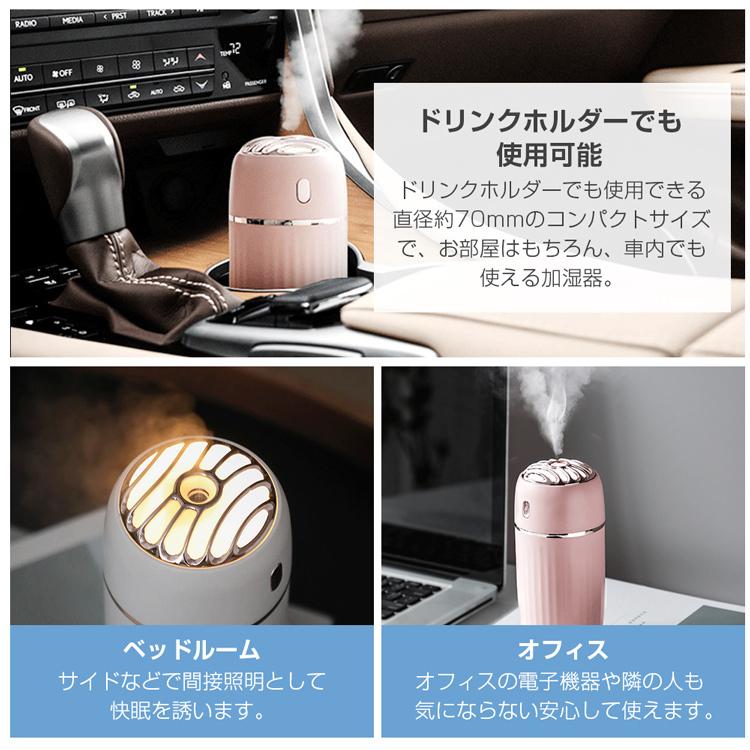 加湿器 超音波式 USB充電式 ナイトライト機能 静音 空焚き防止 卓上 ミニ加湿器 車載加湿器 マイナスイオン除菌 細微ミスト 卓上加湿器