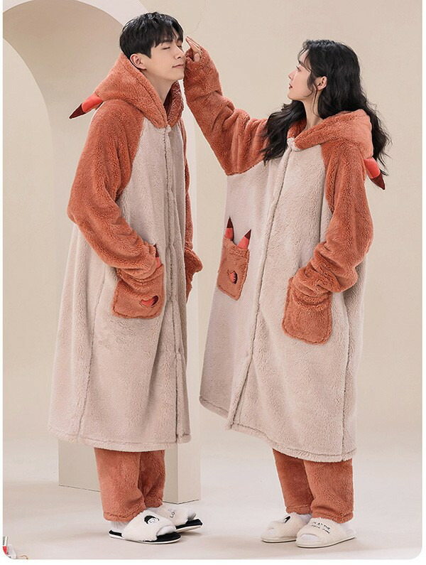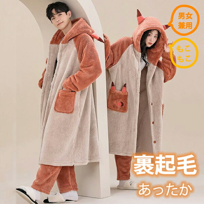 狐 ペアパジャマ 冬 ルームウェア も 男性 女性 M L XL 2XL