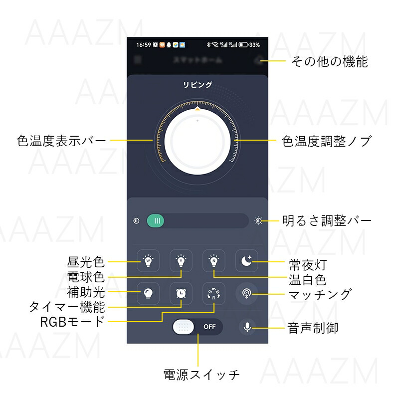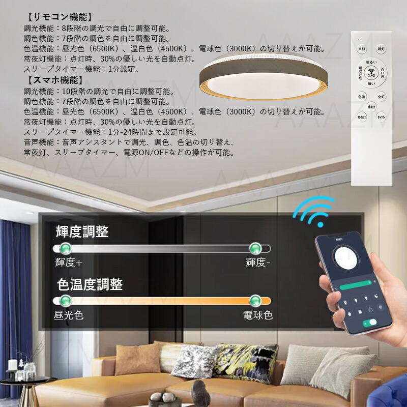 音声機能:音声アシスタントで調光、調色、色温の切り替え、常夜灯、スリープタイマー、電源ON/OFFなどの操作が可能。取り付け方法