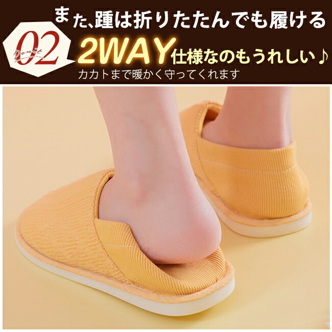 ルームシューズ かかと付き 折り畳み 日用品雑貨 文房具 手芸 新登場! ピンク イエロー グレー S/23-23.5 M/24-24.5 L/25-25.5