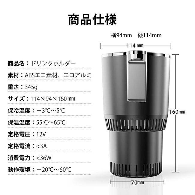 ドリンクホルダー 車載用 保冷 保温 ブラック パープル ブルー