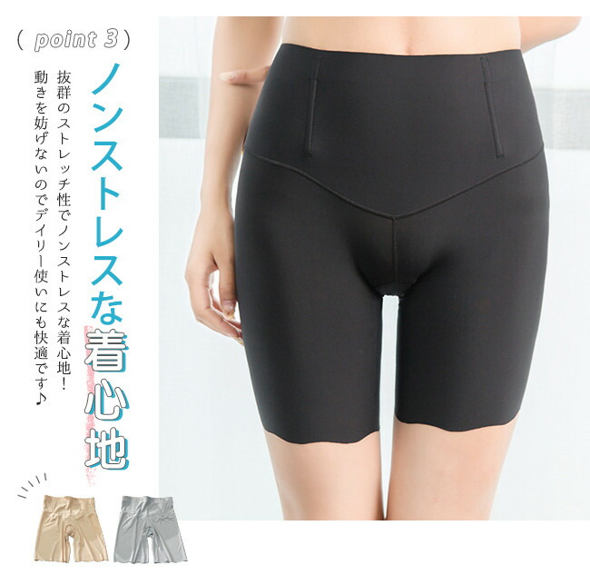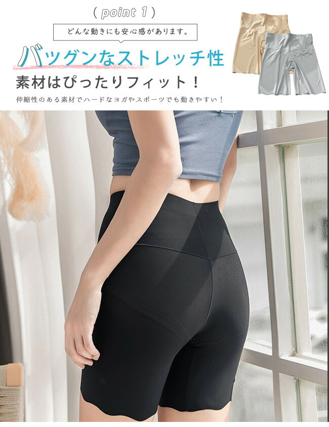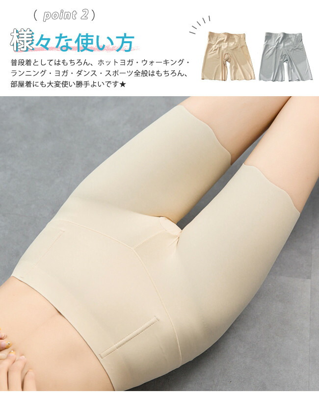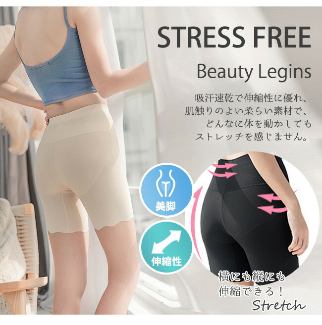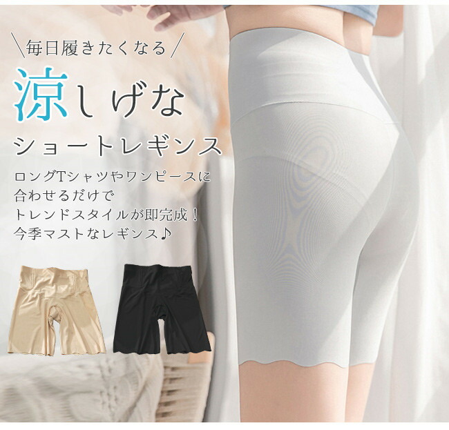 サラッと素材 涼感 ショートレギンス インナー 下着 ナイトウエア 新作 ベージュ グレー ブラック M L XL XXL