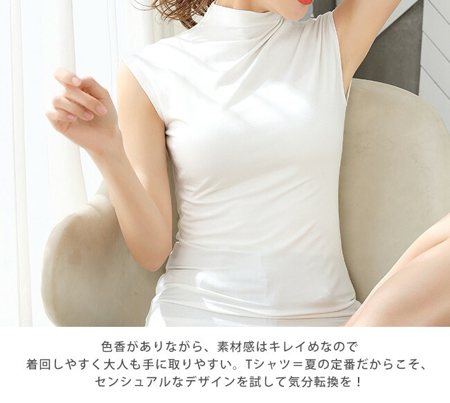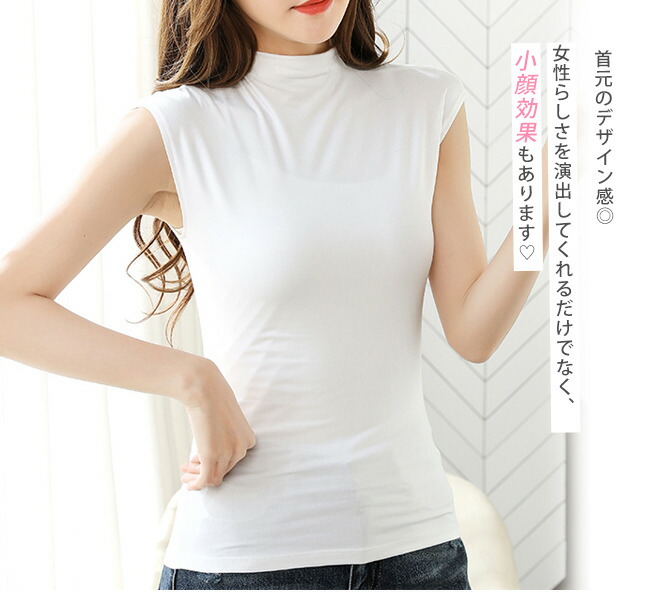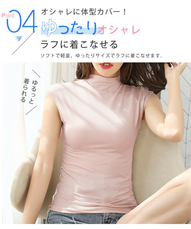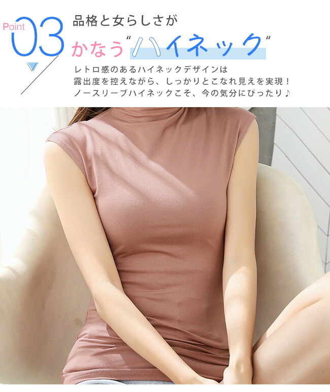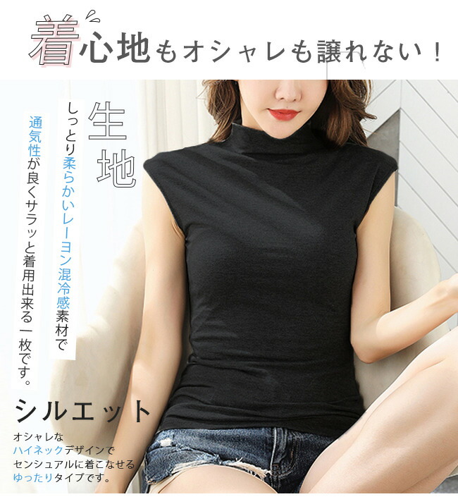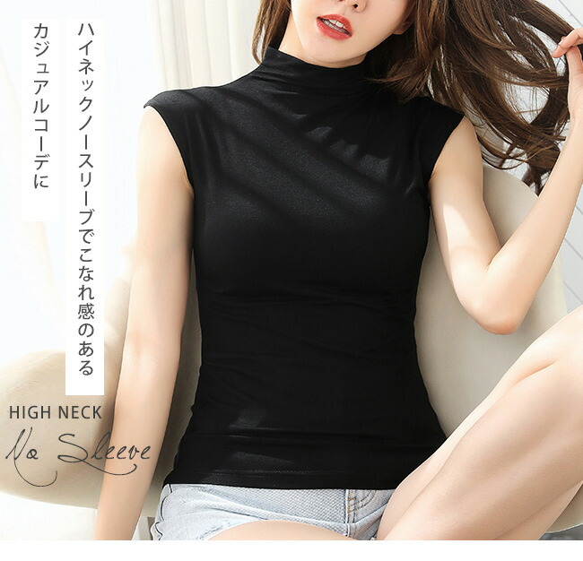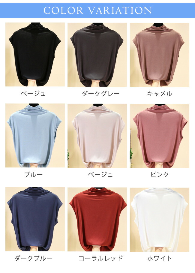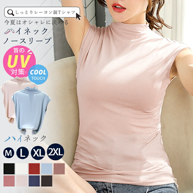 Tシャツ ハイネック ノースリーブ 無 レディースファッション 通販 ブラック ダークグレー キャメル ブルー ベージュ ピンク ダークブルー コーラルレッド ホワイト M L XL XXL