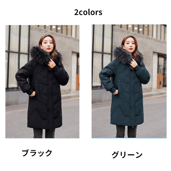 ダウンコート レディース 90%ダウン フード付き ファー付き アウター コート ロング 防寒 暖かい 冬用 秋冬 人気 大きいサイズ M~7L ブラック グリーン 軽量 通勤 通学 カジュアル 防風